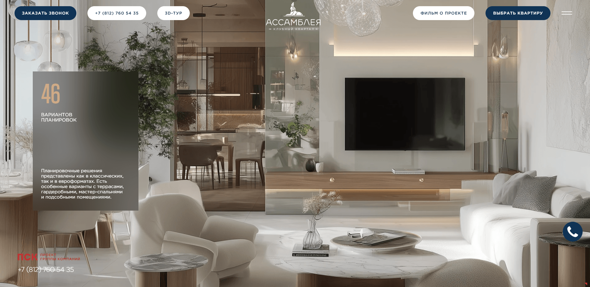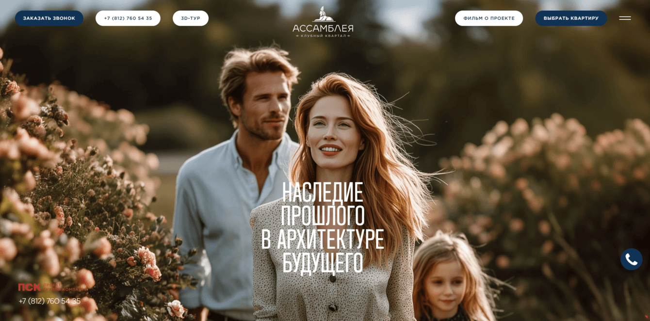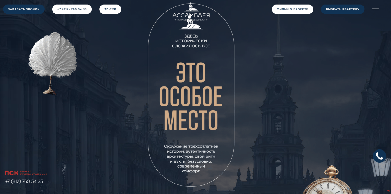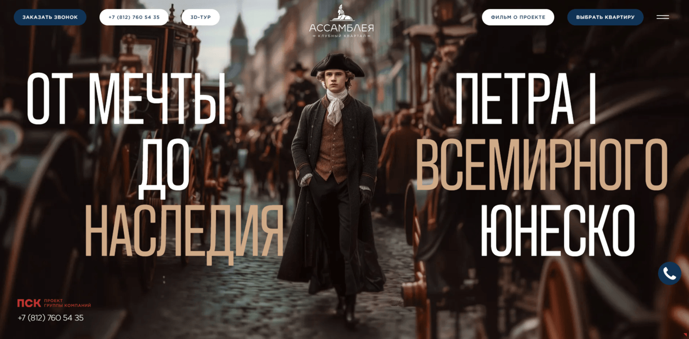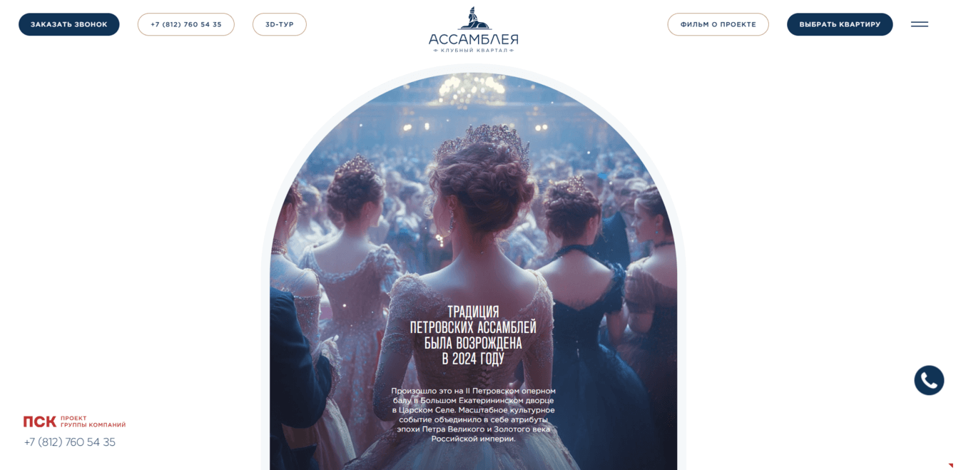 Разработать новый современный сайт для клубного квартала «Ассамблея» в Санкт-Петербурге от девелопера ПСК.