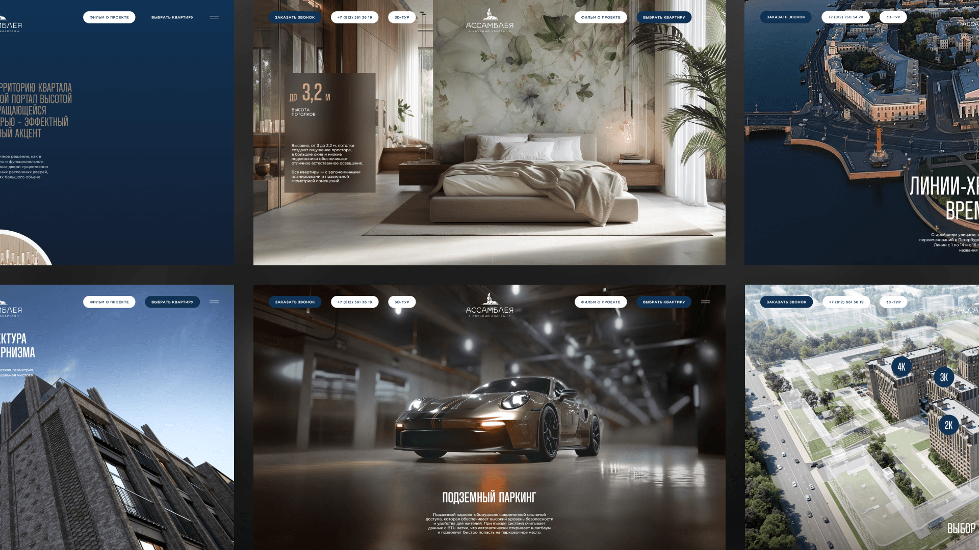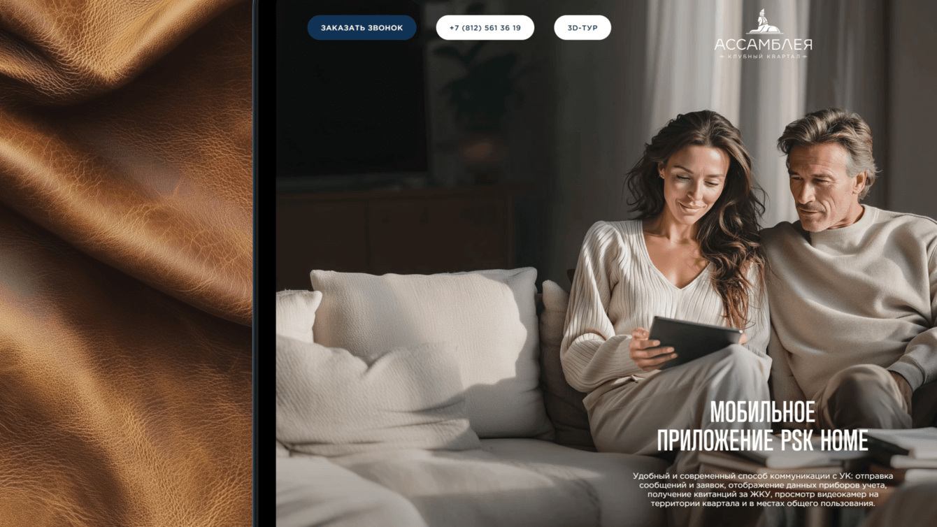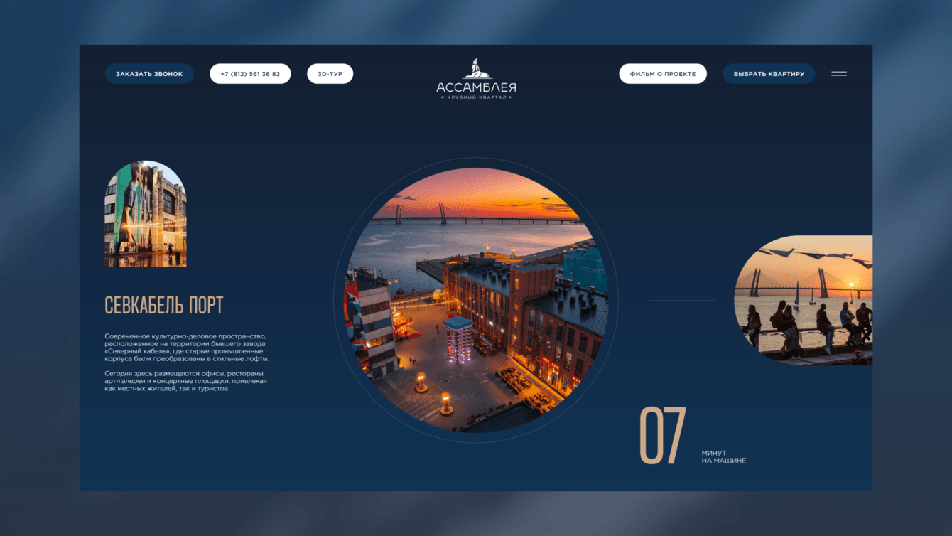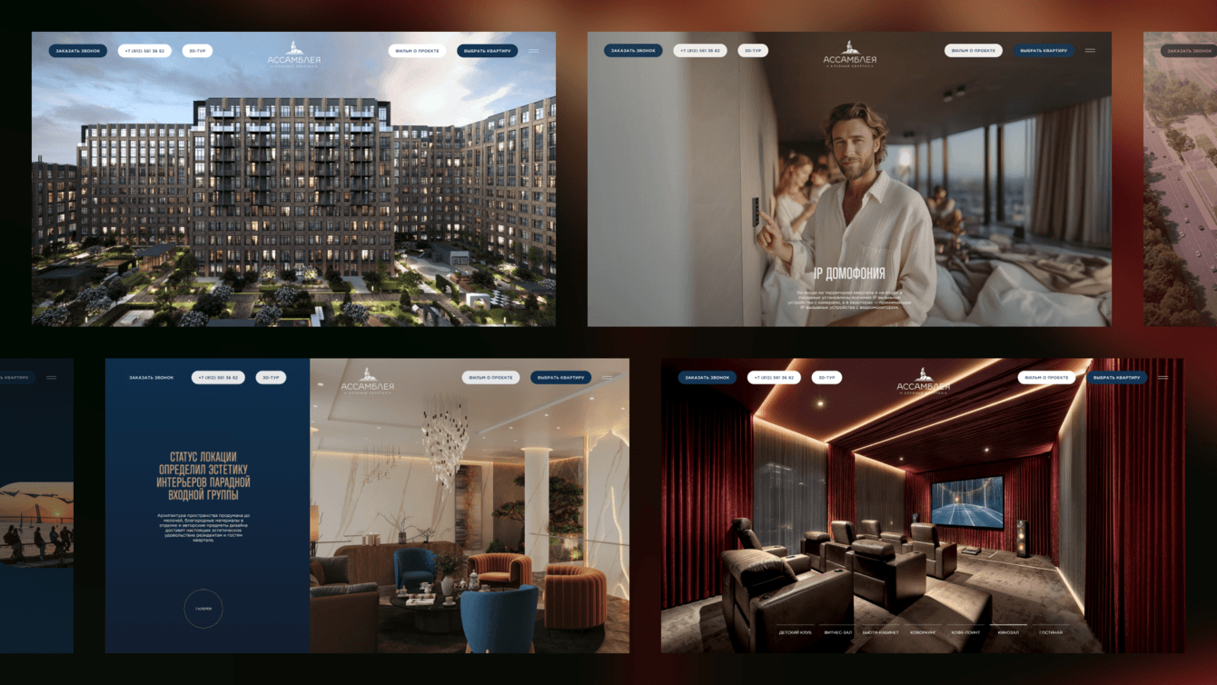 Перед нами стояла комплексная задача: передать атмосферу архитектурно выверенного проекта — клубного квартала «Ассамблея» на Васильевском острове, подчеркнуть уникальность локации и при этом дать пользователю максимально понятный и удобный инструмент для знакомства с объектом и выбора квартиры.