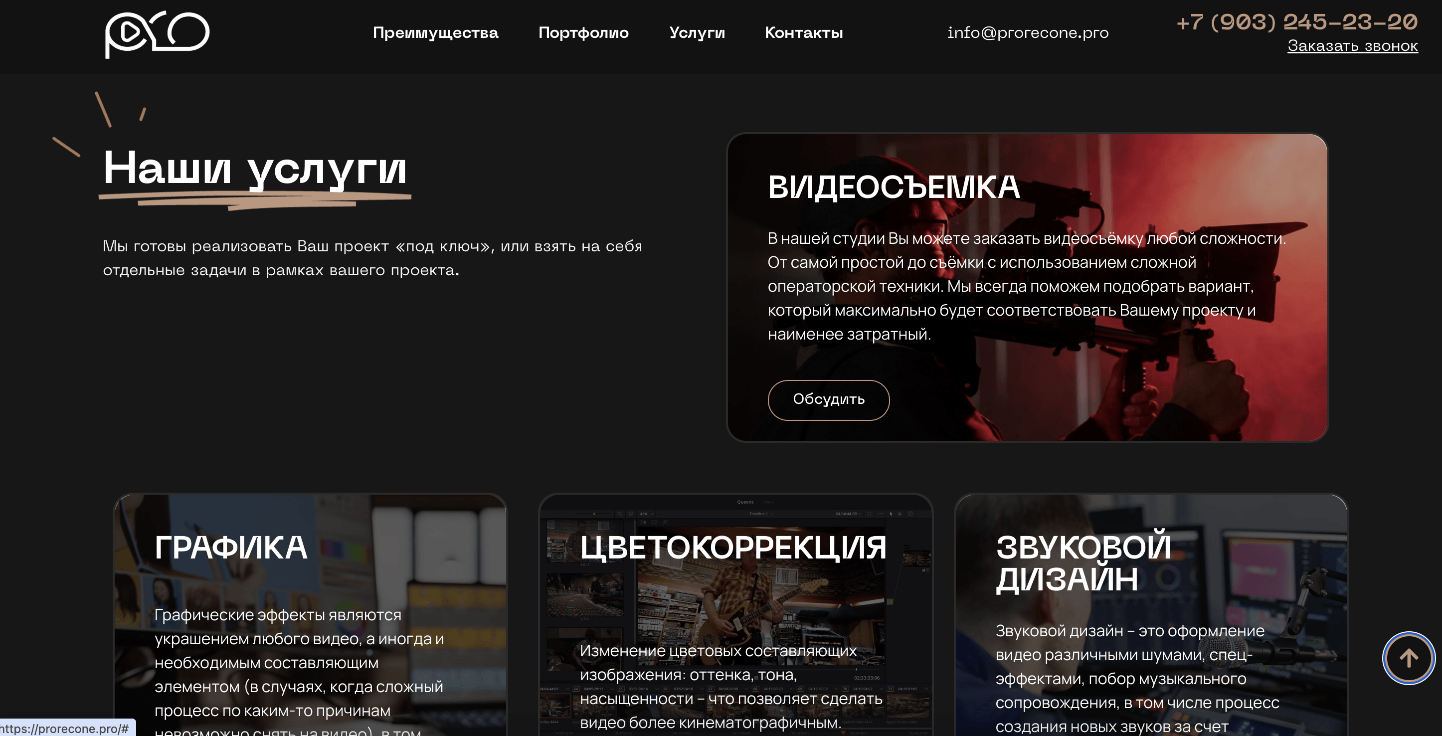 Представляет Prorecone как профессиональную и технологичную студию.
