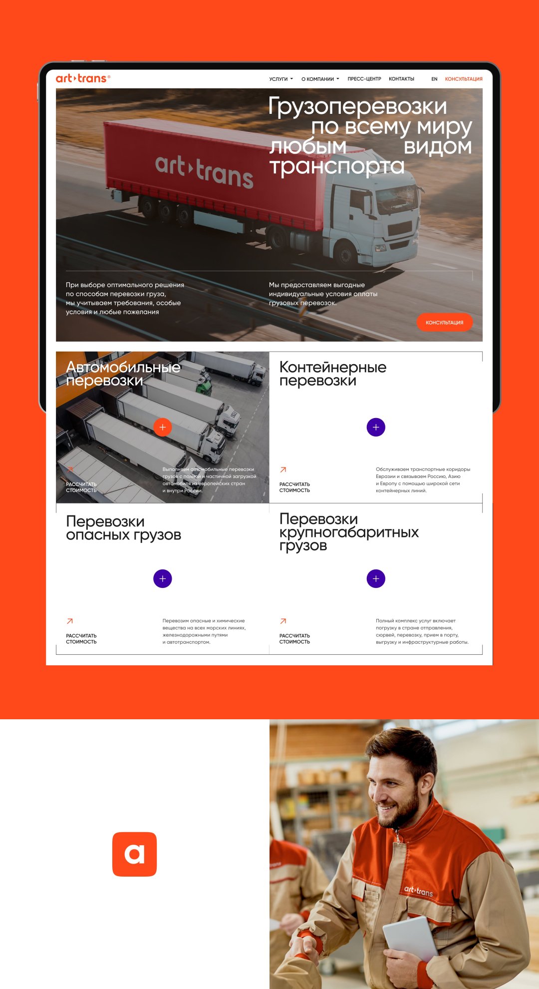 1. У компании Art Trans теперь есть корпоративный сайт, который соответствует фирменному стилю компании и выглядит свежо и современно. Кстати, дизайн сайта настолько совпал с ожиданиями заказчика, что был согласован без правок.