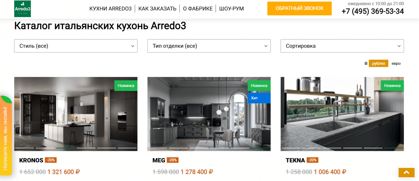 Необходимо разработать сайт-каталог, для компании по продаже кухонь из Италии.