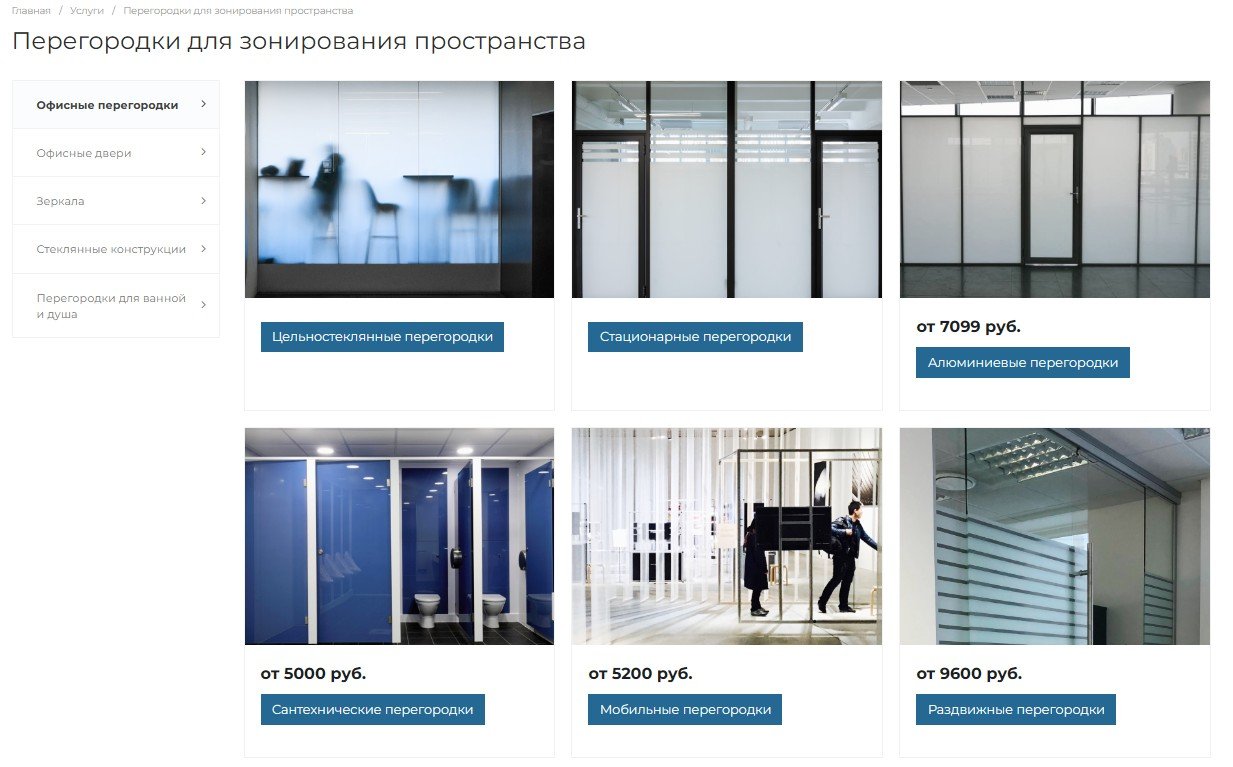 Разработка сайта для компании, специализирующейся на изготовлении и установке перегородок любой сложности, как для офисов, так и для частных домов и квартир.