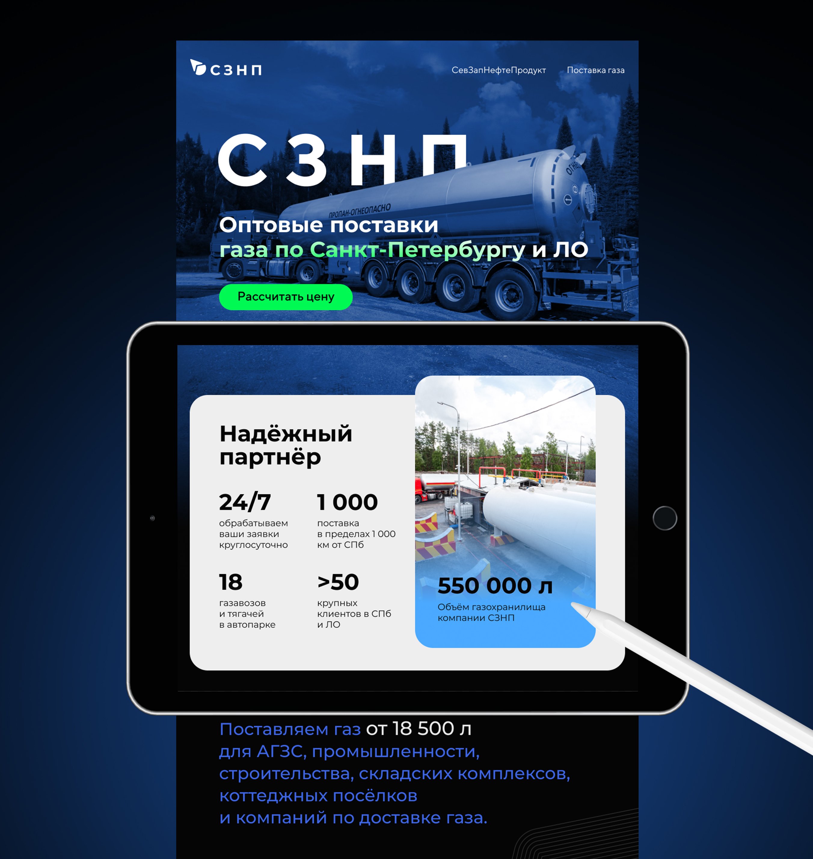Разработать небольшой промо сайт для компании, которая занимается оптовой поставкой газа.
