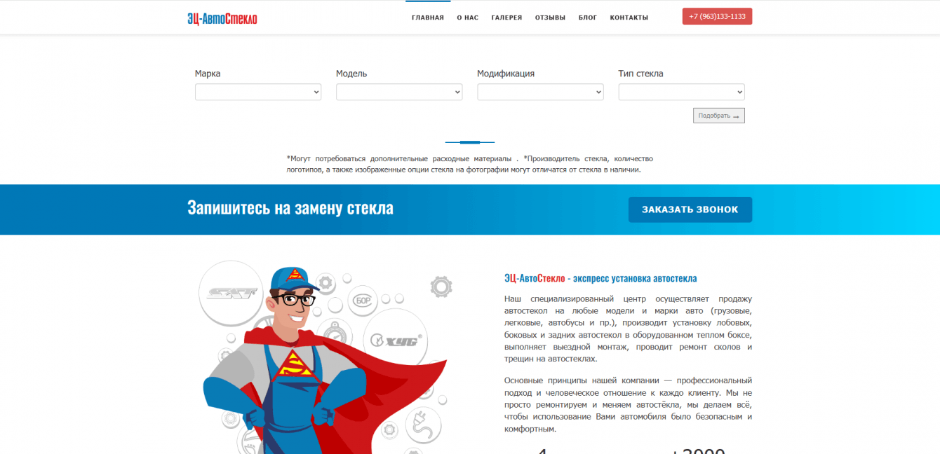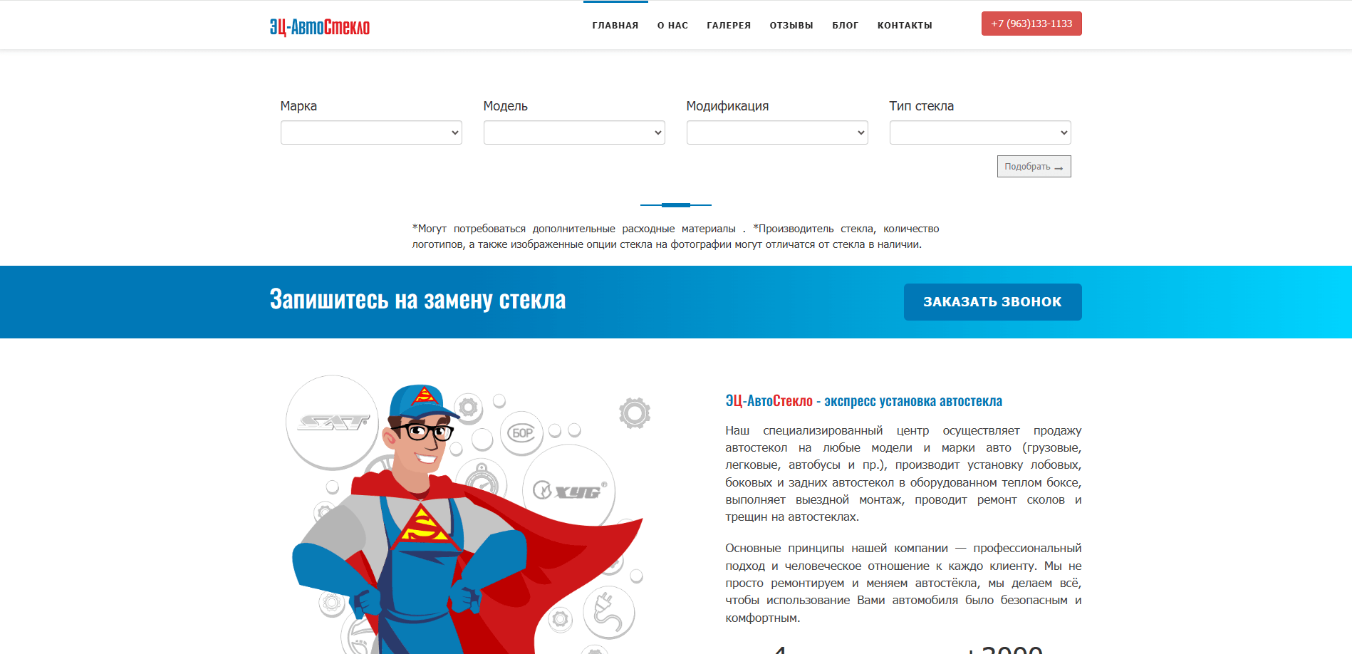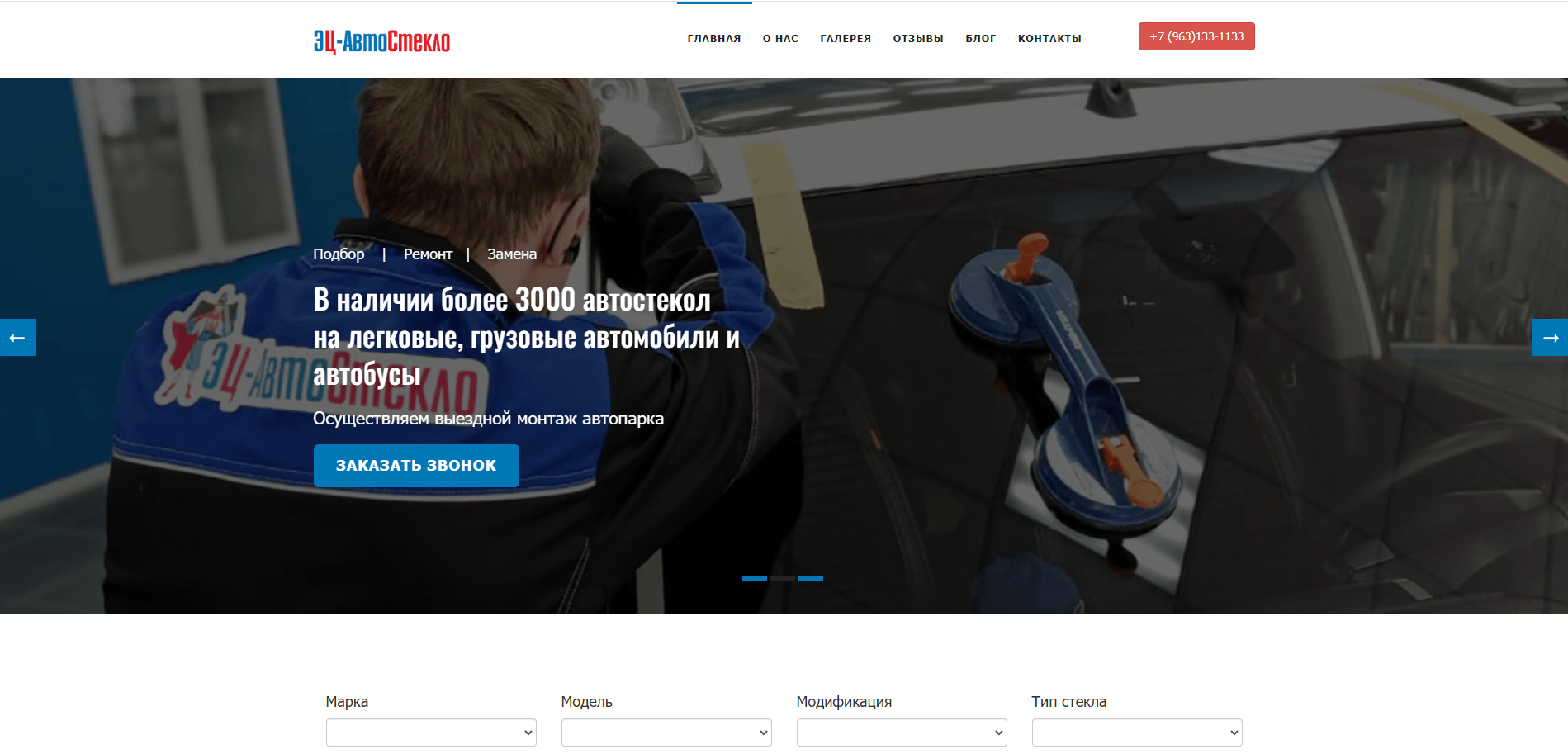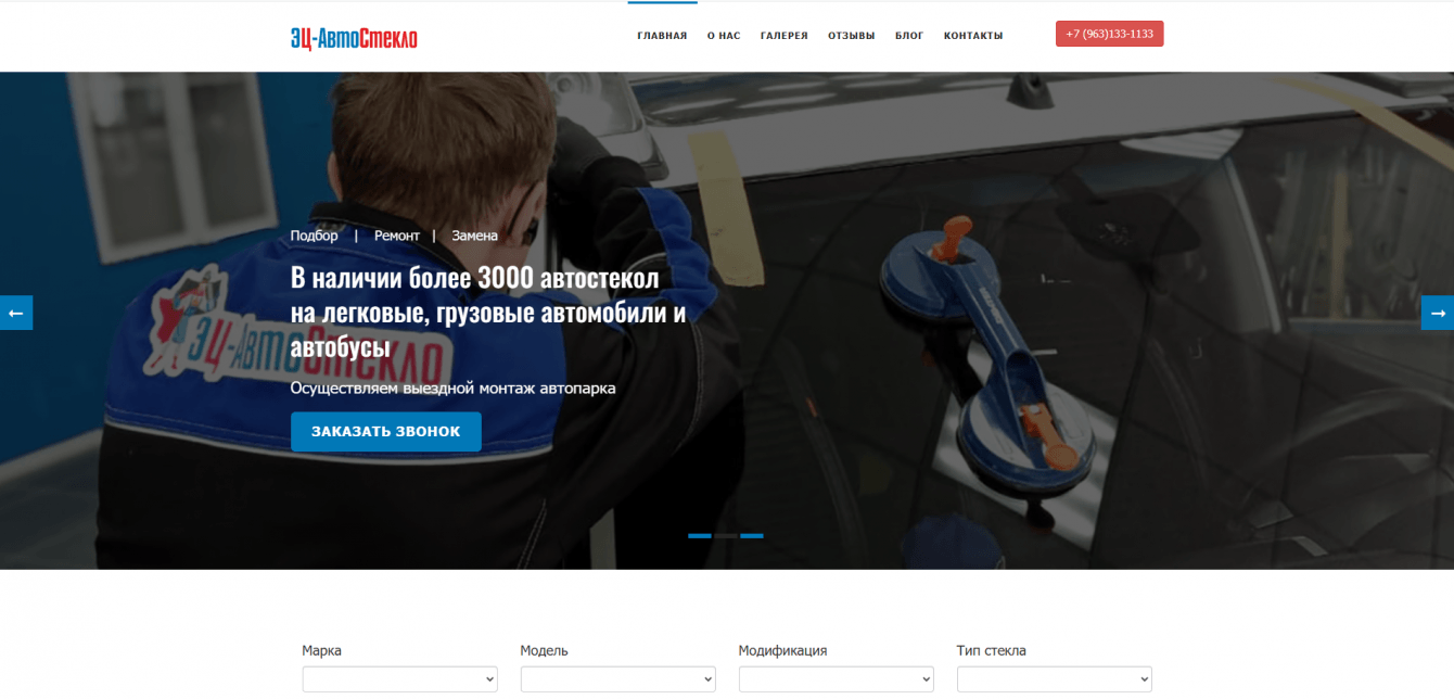 Сайт для компании по продаже и установке автостекол с функцией подбора автостекла по заданным параметрам