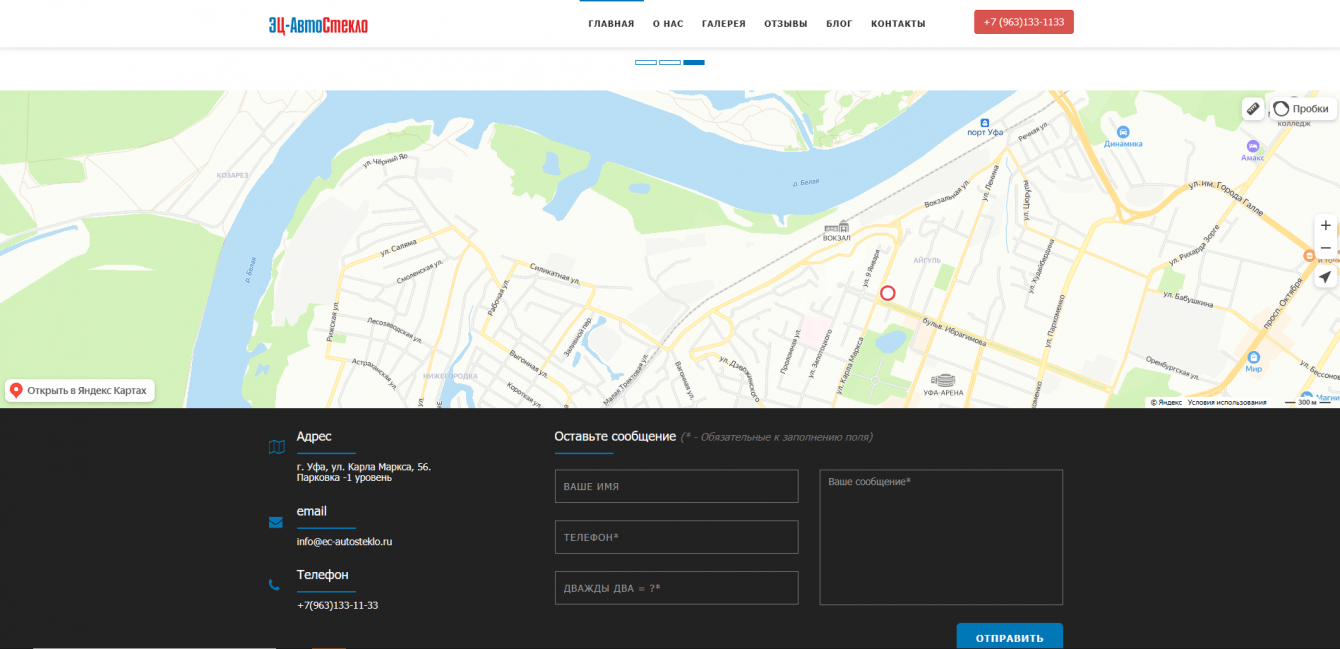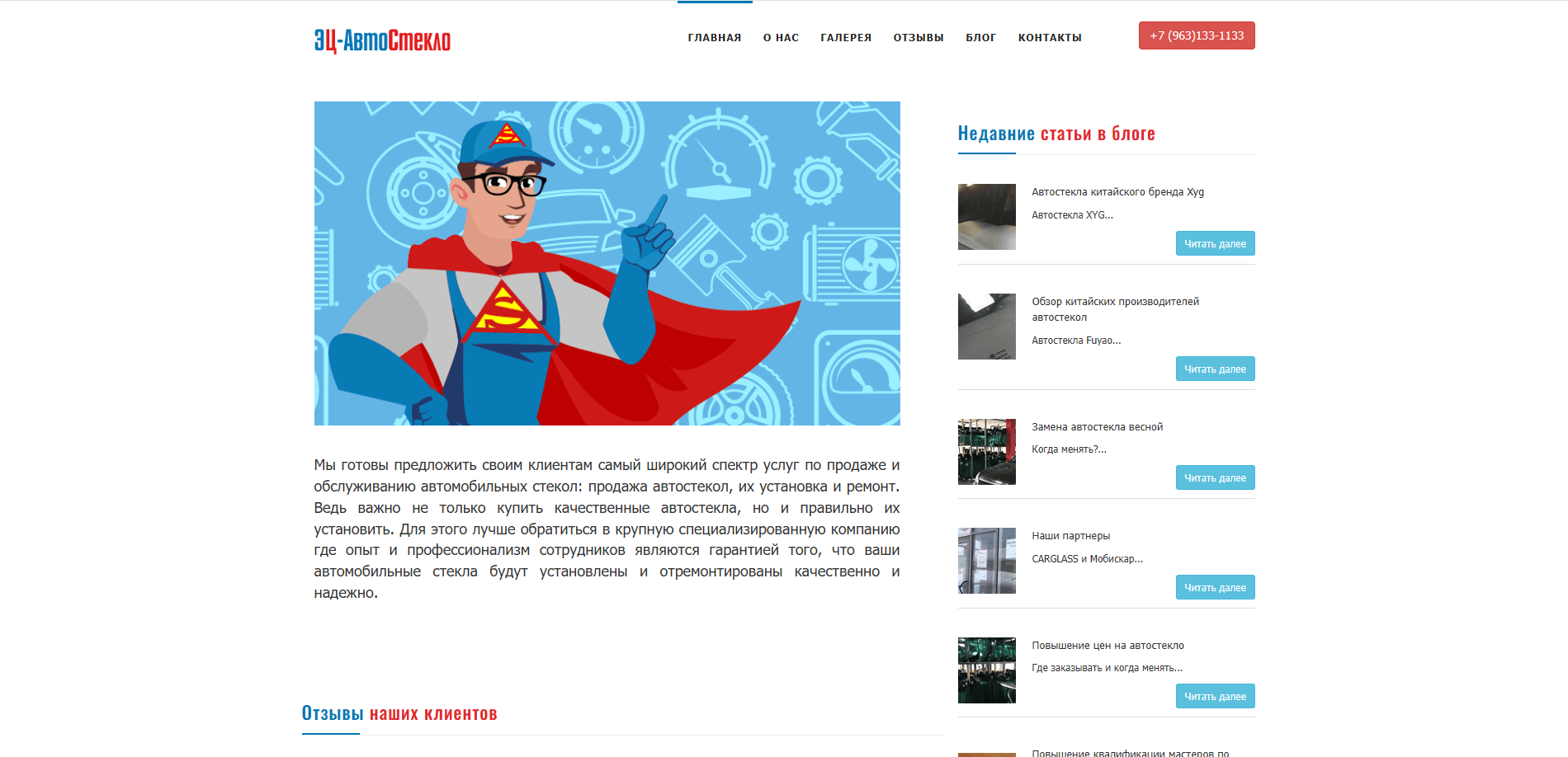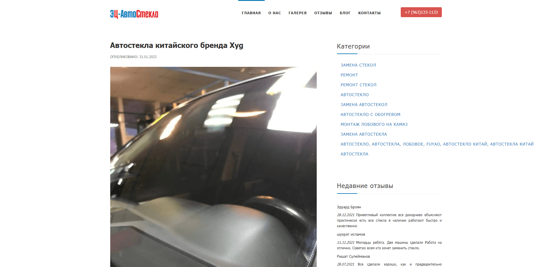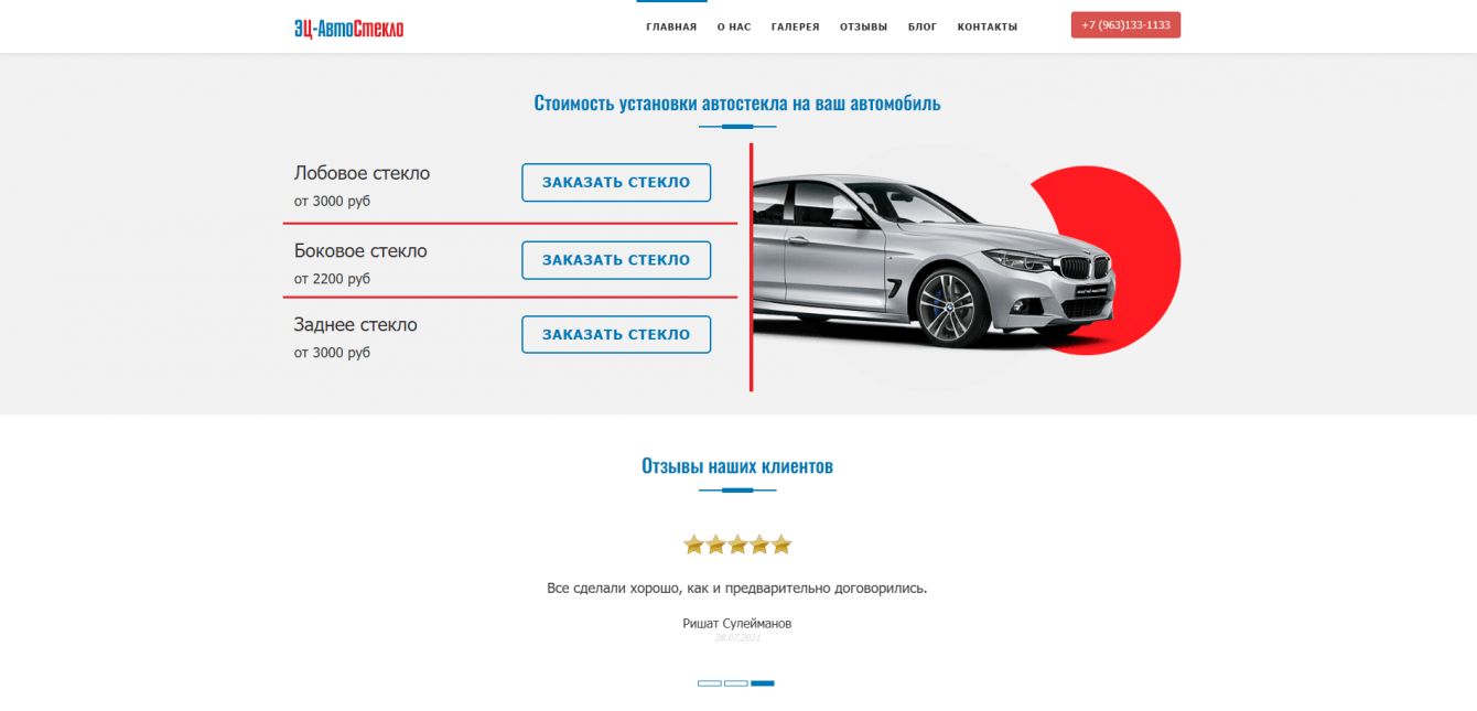 Сайт для компании по продаже и установке автостекол с функцией подбора автостекла по заданным параметрам