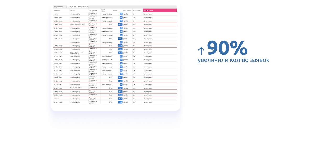 С помощью товарных кампаний и ретаргетинга нам удалось увеличить кол-во заявок на 90%. Реализованная комплексная стратегия доказала свою эффективность в сложном B2B-сегменте с длинным циклом продаж.