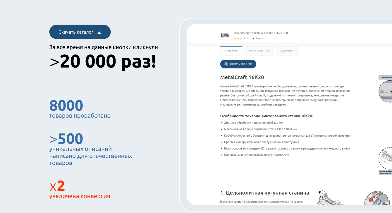 Доработка описаний позволила повысить лояльность. Теперь пользователи смогли увидеть готовую презентацию о продукции с полным описанием и преимуществами предлагаемого товара.