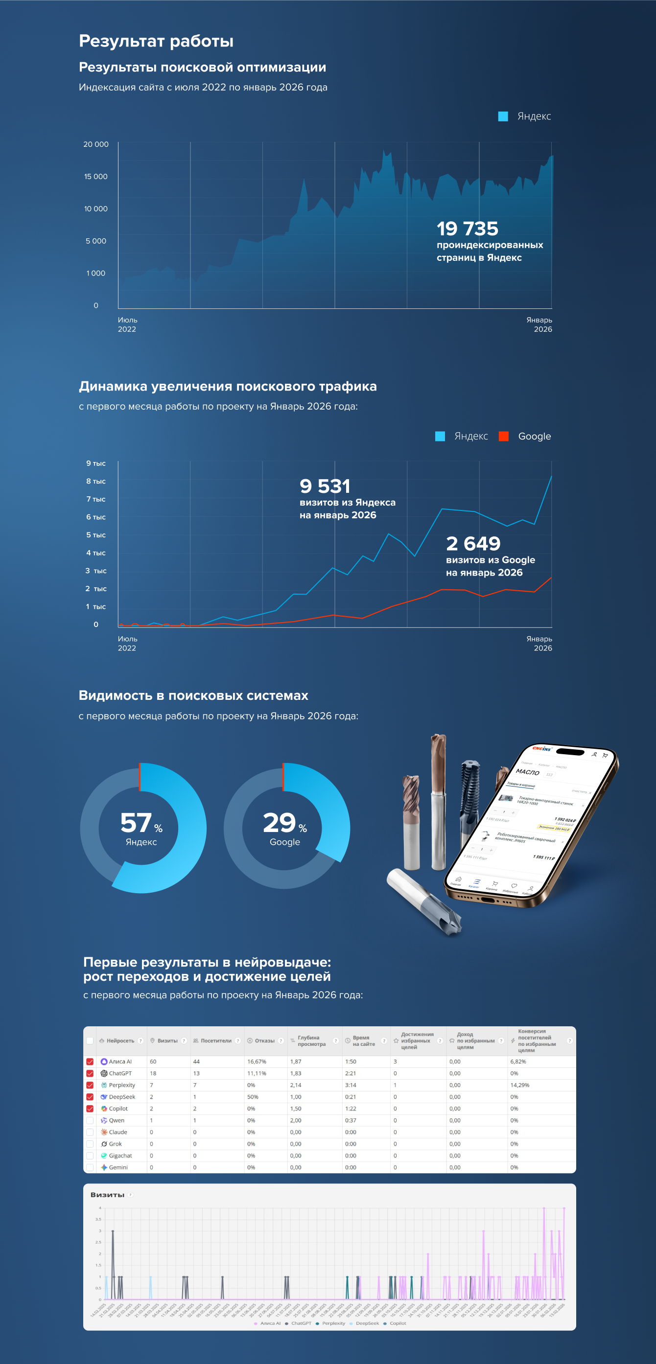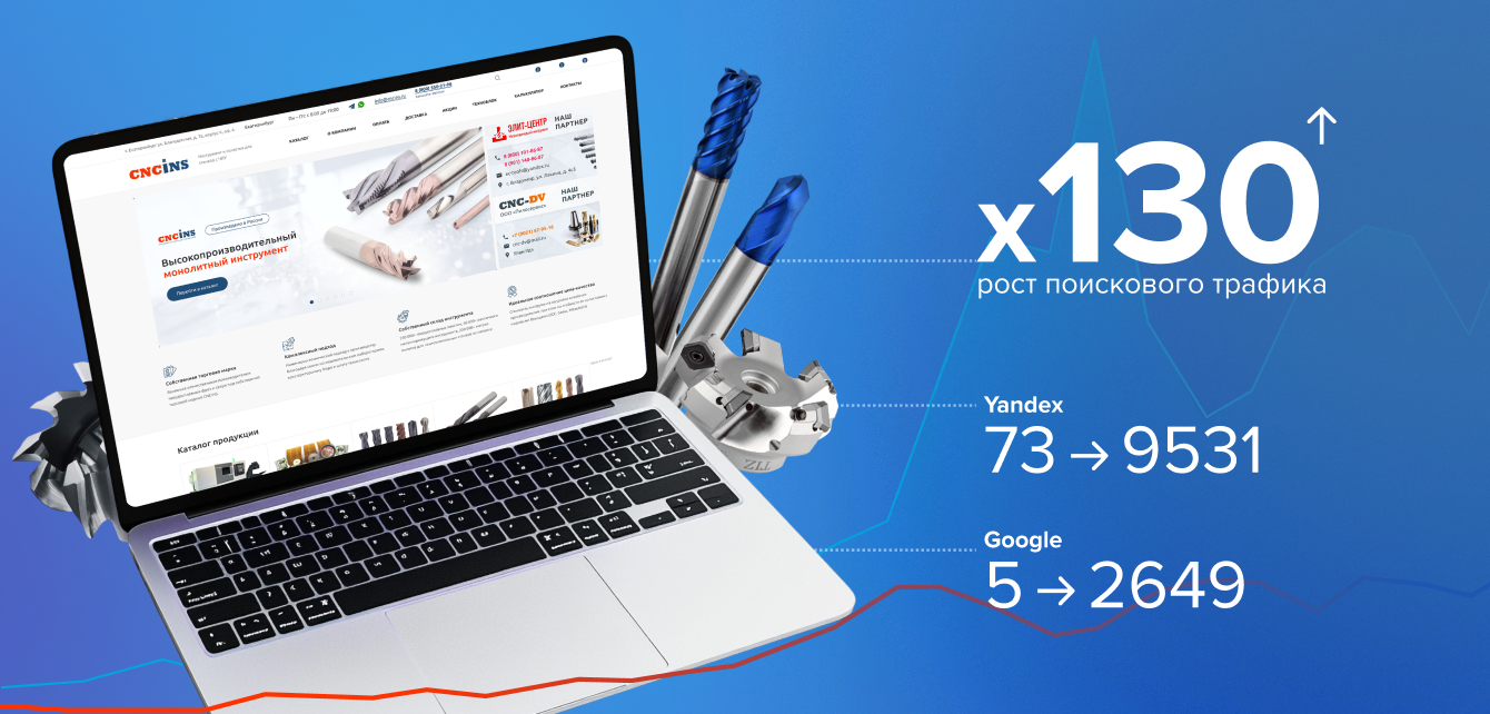 За 4 года работы над проектом нам удалось практически с нуля создать высокопосещаемый сайт производителя CNCINS.