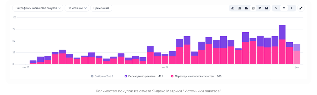 Однако, чтобы ускорить получение результатов и протестировать спрос, пока страница набирала SEO-вес, мы параллельно запустили её рекламную поддержку. Подробнее об этом — в соответствующем разделе.