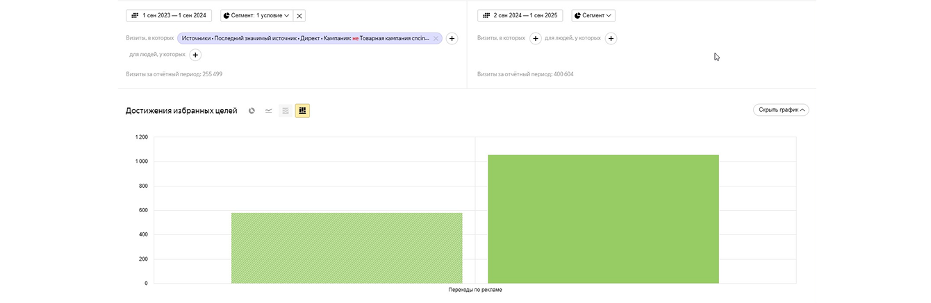 После достижения нужного объема трафика за счет SEO, рекламная кампания была отключена, так как органический трафик стал достаточным для поддержки целей проекта.