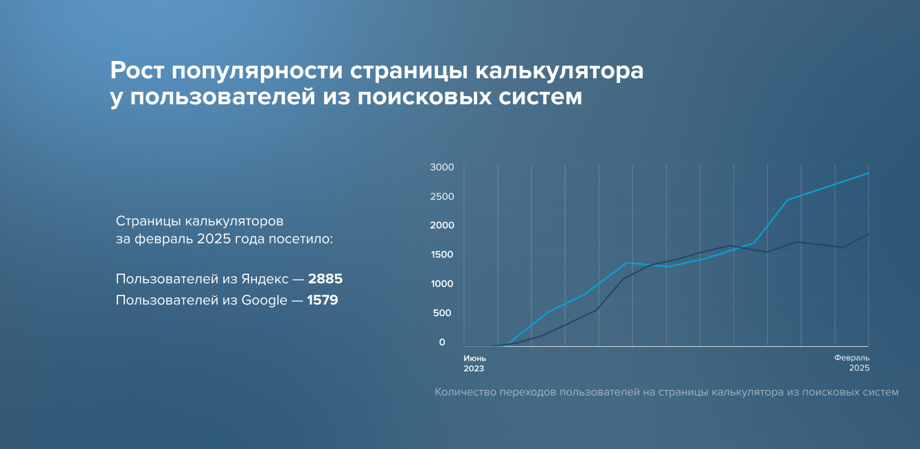 Мы разработали отдельную поисковую рекламную кампанию с выделенным бюджетом, настроили объявления как в поисковой сети, так и в сетях. Дополнительно запустили ретаргетинг на пользователей, посетивших калькулятор, а также таргетинг на похожую аудиторию для максимального охвата и дополнительных конверсий.