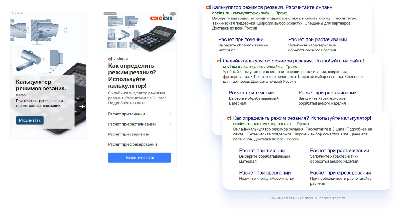 Примеры рекламных объявлений на поиске и в сетях: