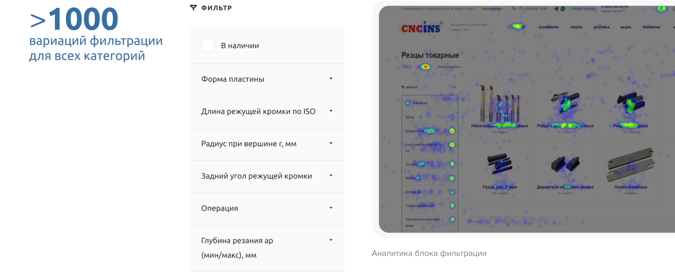 Провели редизайн каталога в современном формате и расширили его функционал: добавили фильтрацию по характеристикам товаров, что значительно повысило удобство поиска для пользователей.
