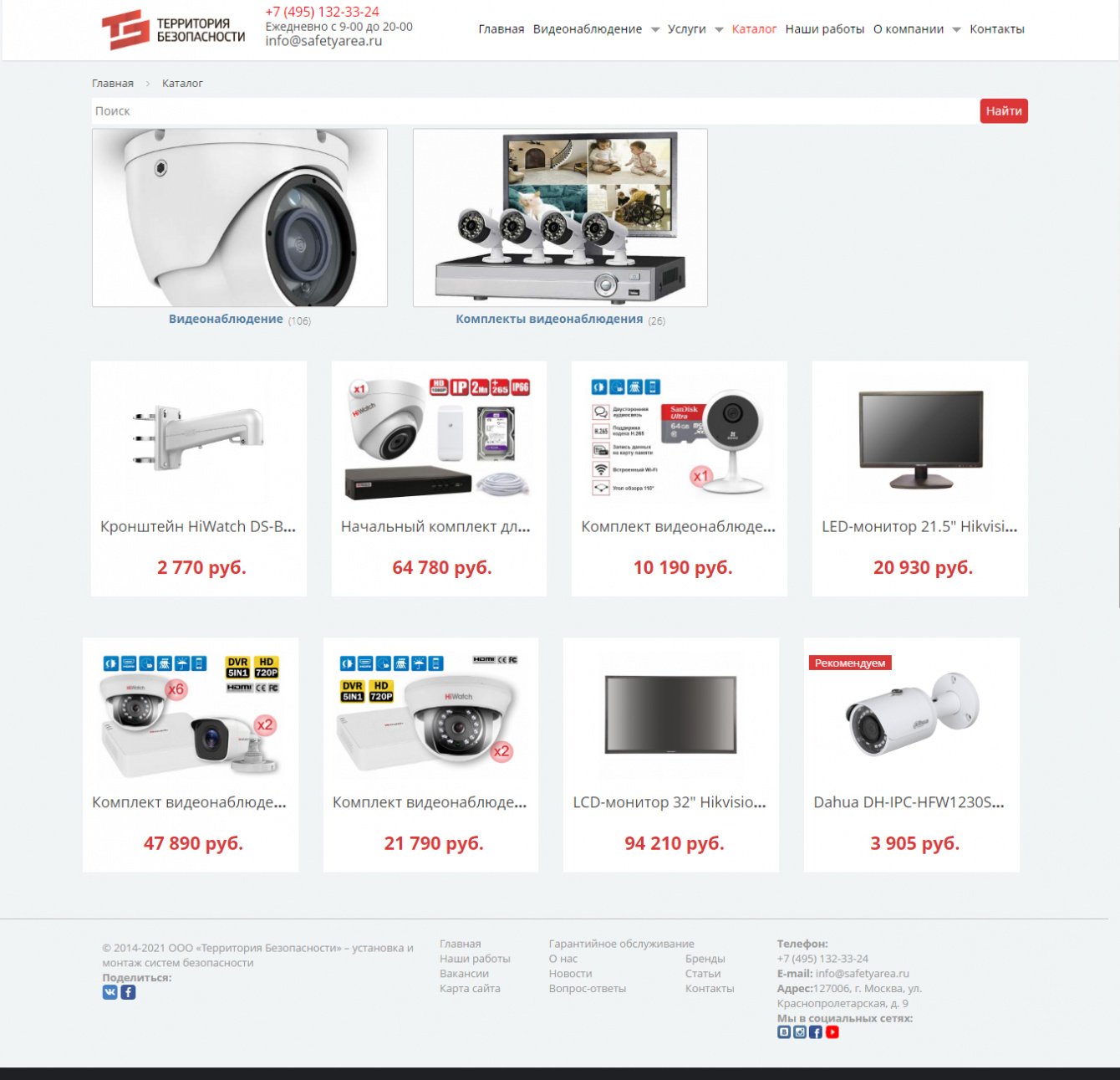 Разработан функциональный сайт для организации, занимающейся услугами комплексной безопасности для Вашего дома и бизнеса - ООО "Территория Безопасности".