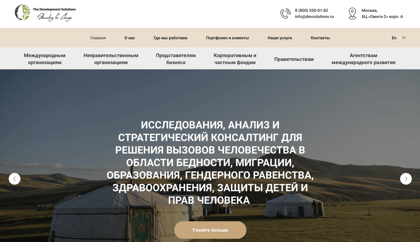 Редизайн старого сайта для The Development Solutions. Это первое и лидирующее консалтинговое агентство в области развития на территории России и стран СНГ.