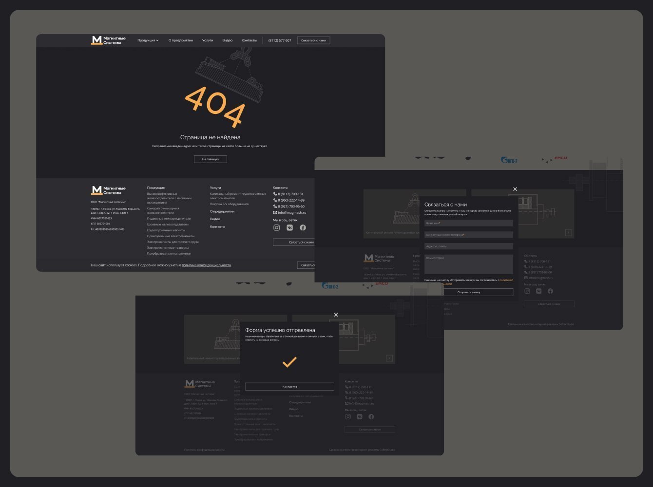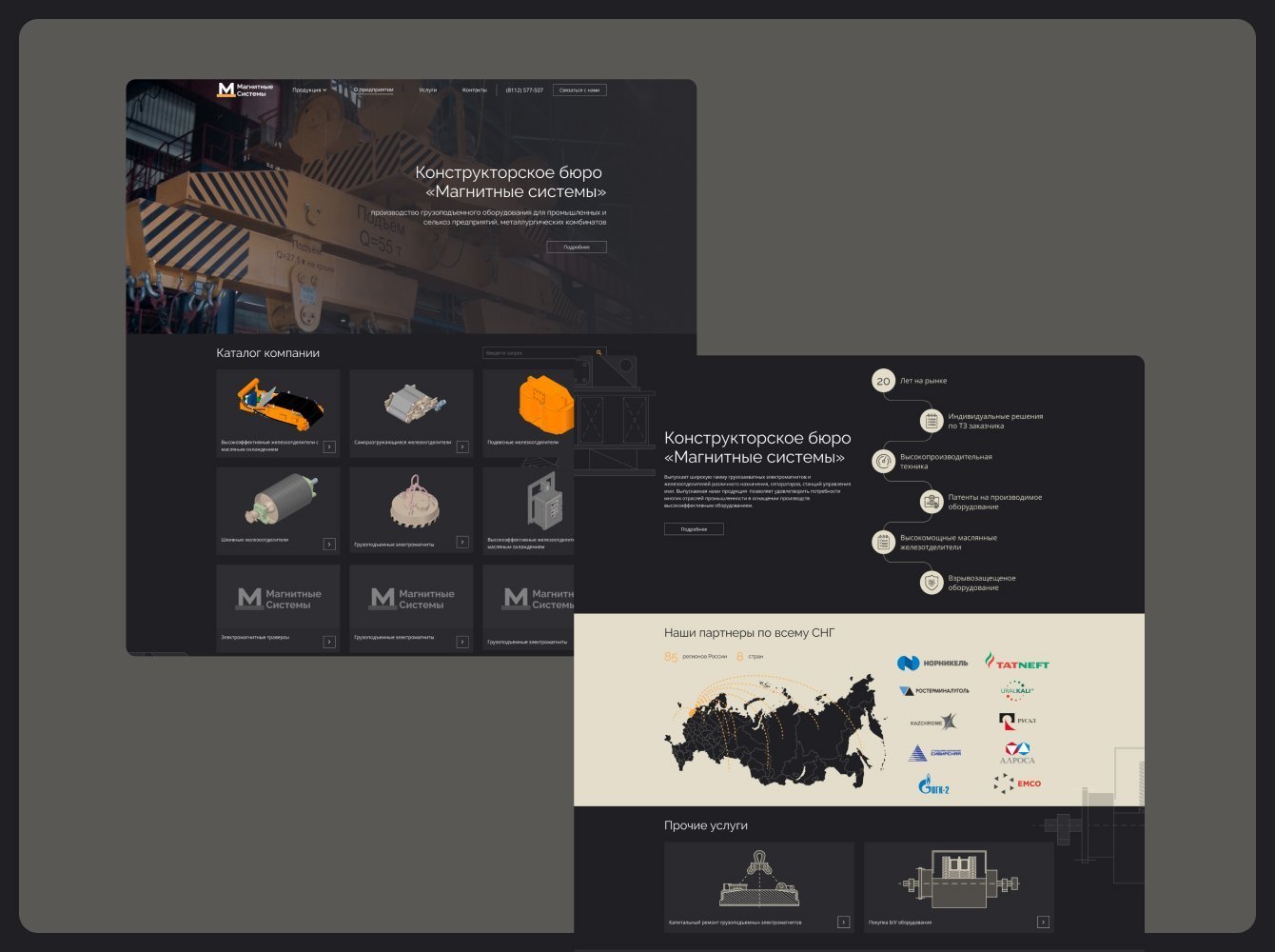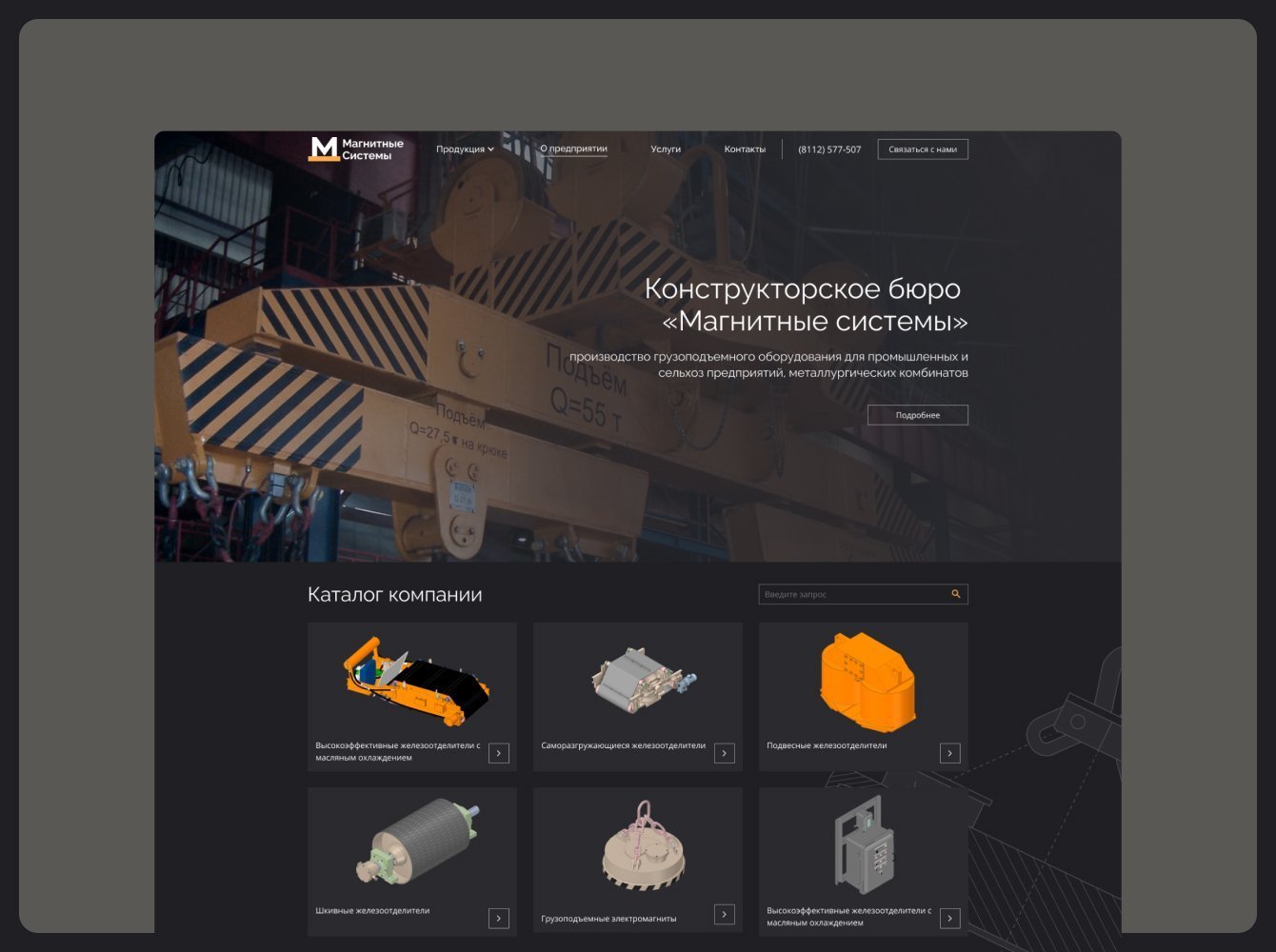 Получился стильный и простой сайт. Он выгодно выделяется на фоне конкурентов за счет информативной главной страницы и проработанной визуальной составляющей. А в скором времени сайт будет дополнен мультиязычностью, что позволит КБ «Магнитные системы» ориентироваться не только на отечественных покупателей, но и на зарубежных.