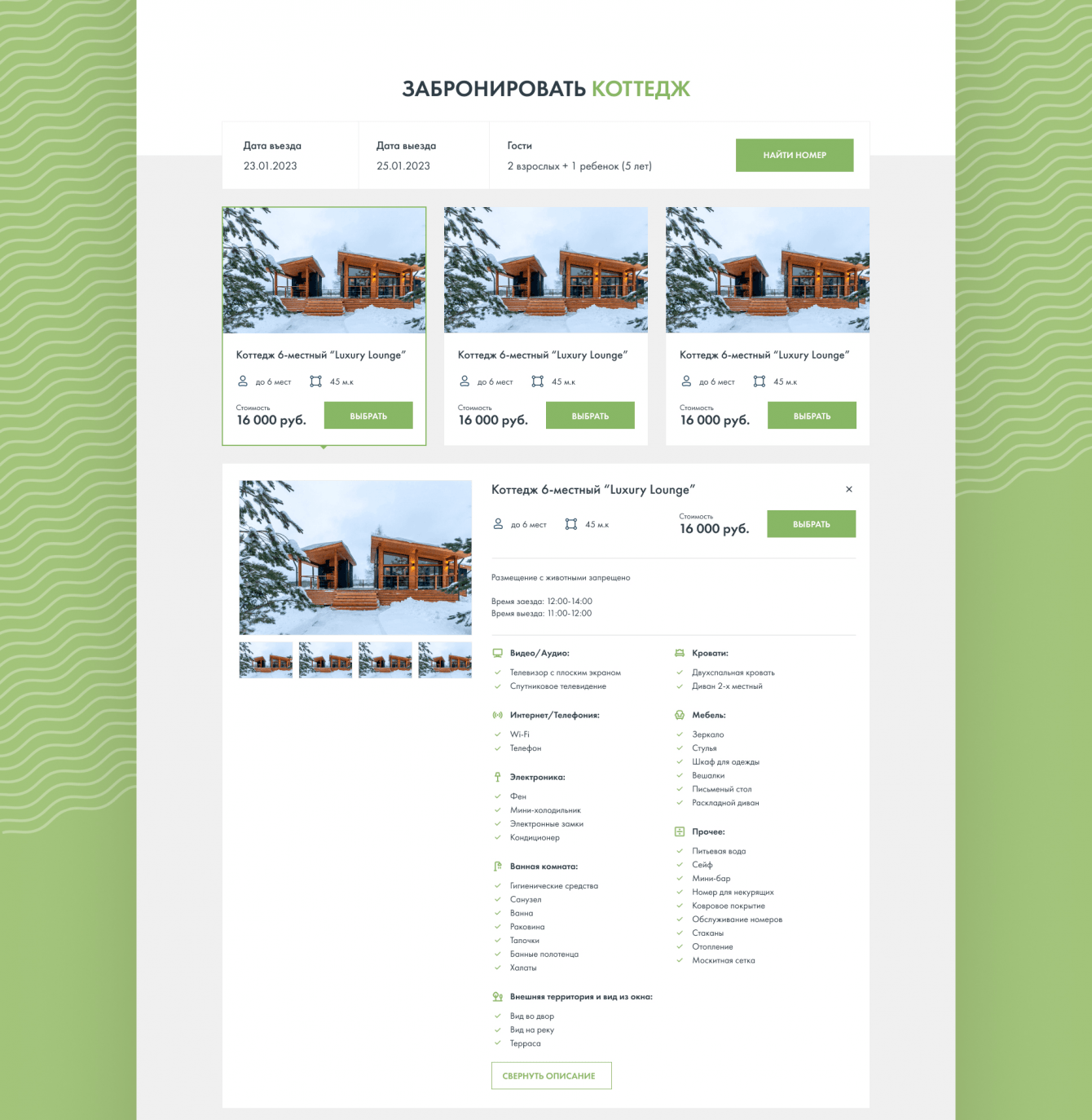 Цель проекта: разработать легкий, производительный сайт для посуточного онлайн-бронирования домиков для отдыха.