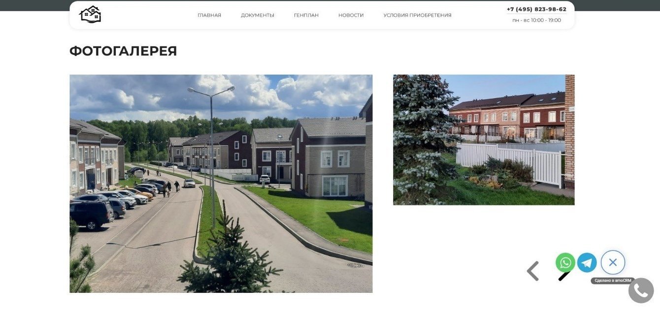 Кроме того, мы добавили на сайт фотогалерею — реальные фотографии позволяют потенциальным покупателям таунхаусов увидеть, как на самом деле выглядит жилой массив и часто влияют на решение о покупке.
