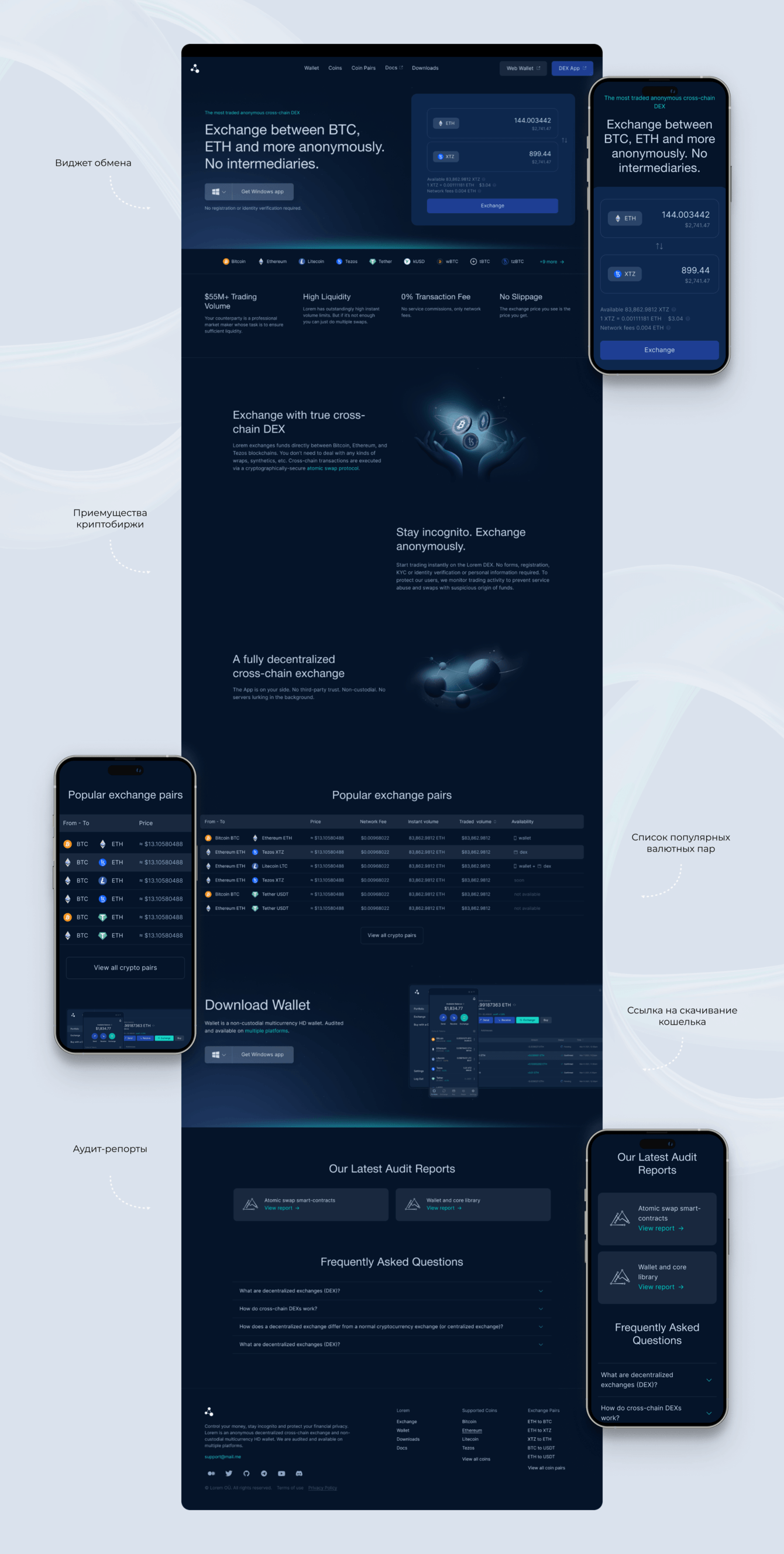 В сжатые сроки создали сайт криптобиржи, работающий на технологии PWA, интегрировали его с сервисами трейдинговой аналитики и криптокошельком, а также разработали мобильный кошелек: