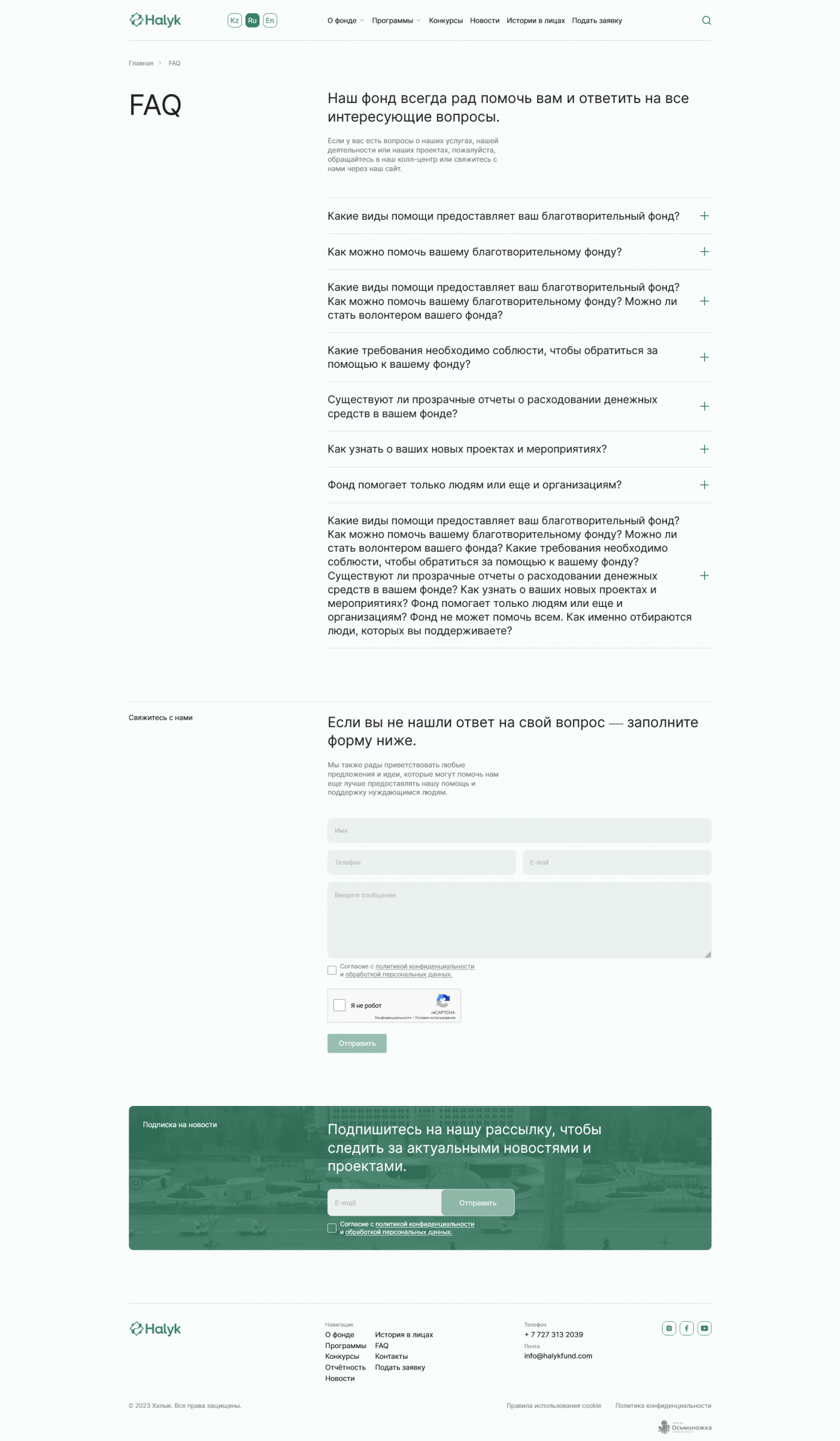 Сайт был разработан с учетом всех требований и пожеланий заказчика. Он имеет современный дизайн, удобную навигацию и интуитивно понятный интерфейс. На сайте можно найти информацию о фонде, его целях и задачах, а также о том, как можно помочь.