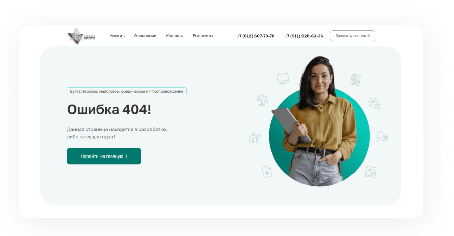 Не забываем и здесь покреативить, дополнив визуалом под фирстиль компании. А также с нее удобно перейти в меню или на главную страницу.