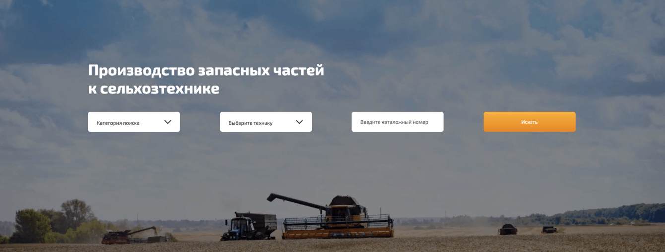 Нам было важно получать обратную связь от клиента во время выполнения каждого из этапов. К примеру, когда речь зашла о визуальной составляющей, заказчик попросил, чтобы на главном экране было видео с техникой, для которой он производит запасные части. Наши дизайнеры с радостью воплотили эту идею в жизнь.