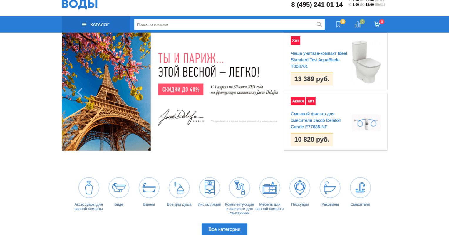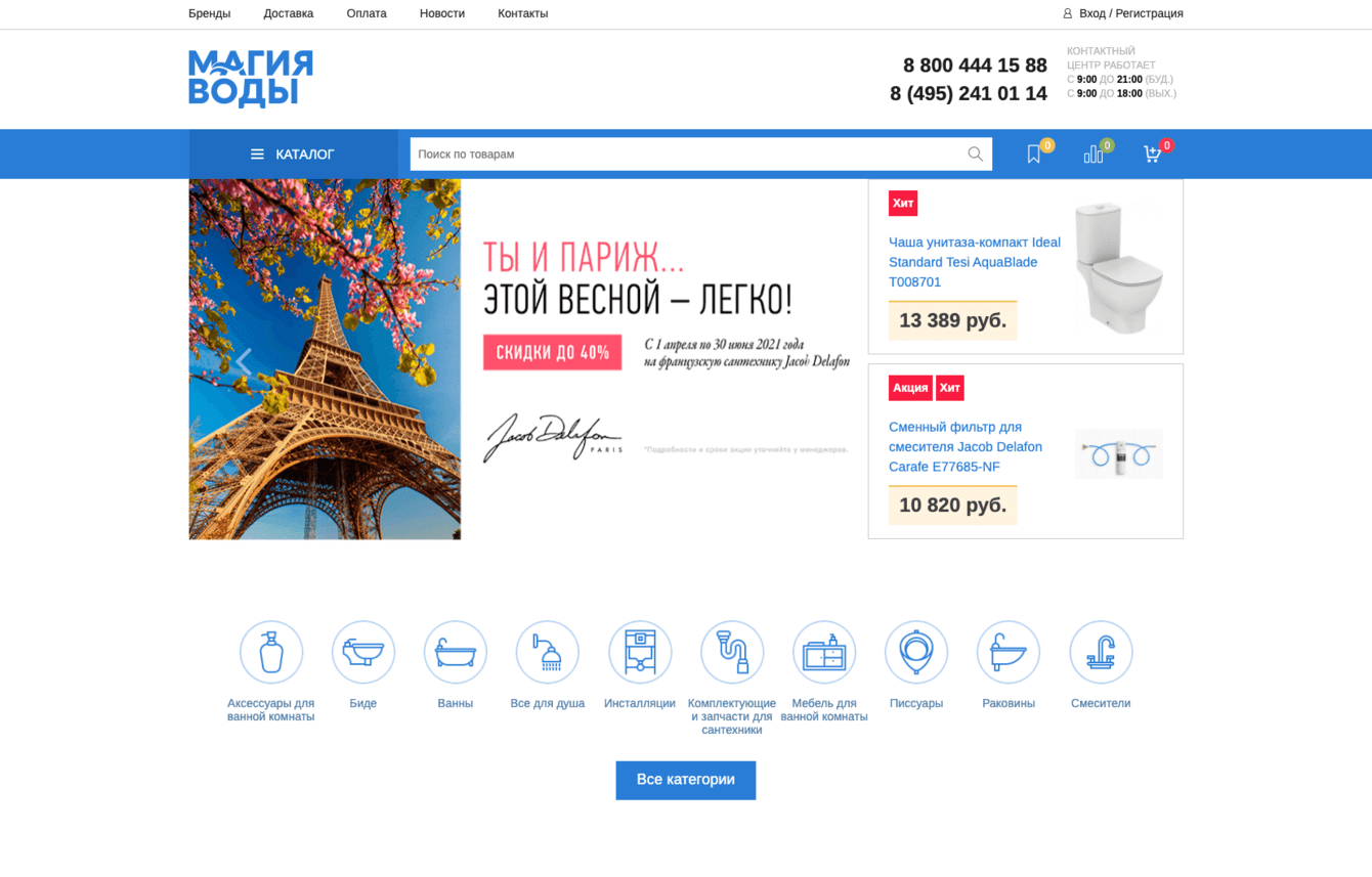 Разработка дизайна, сайта и интернет-магазина для продавца европейской сантехники
