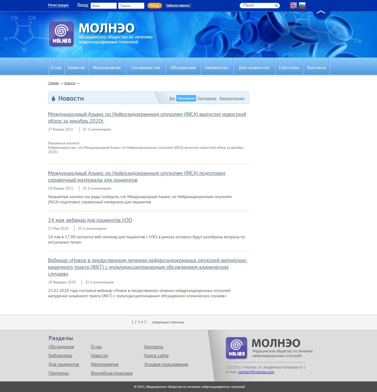 Разработан сайт компании, который отвечает требованиям Клиента: обеспечивает коммуникацию членов сообщества; предоставляет качественный контент по нейроэндокринным опухолям обеспечивает информационный доступ врачам и пациентам к новым разработкам, исследованиям, мероприятиям в области лечения и диагностики нейро-эндокринных заболеваний.