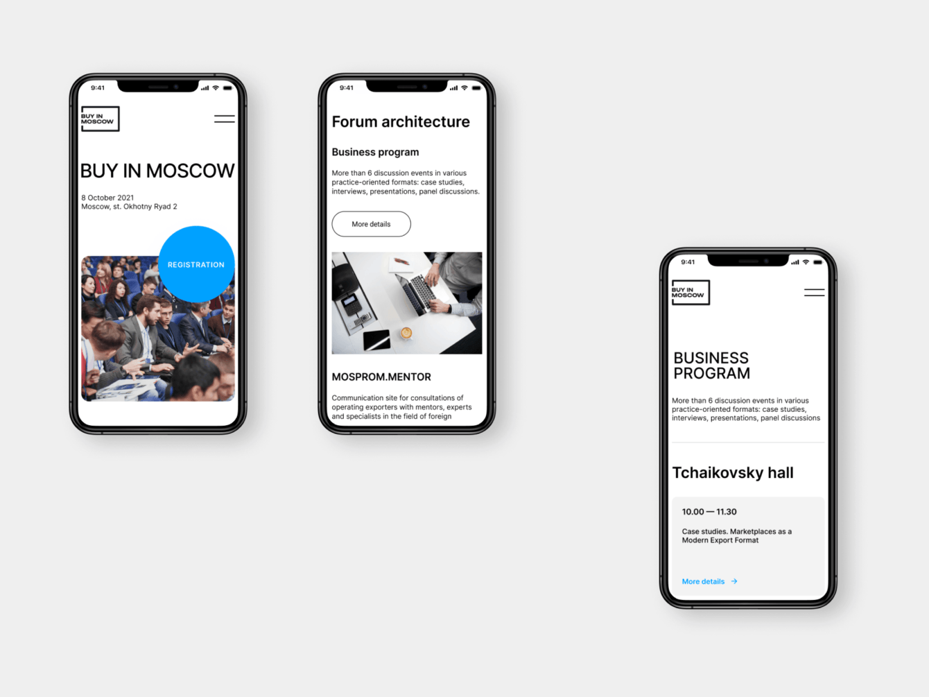 Дизайнеры команды «Киберформ системс» отрисовали минималистичную концепцию, которая передавала современность мероприятия, а также давала положительный опыт взаимодействия с интерфейсом.