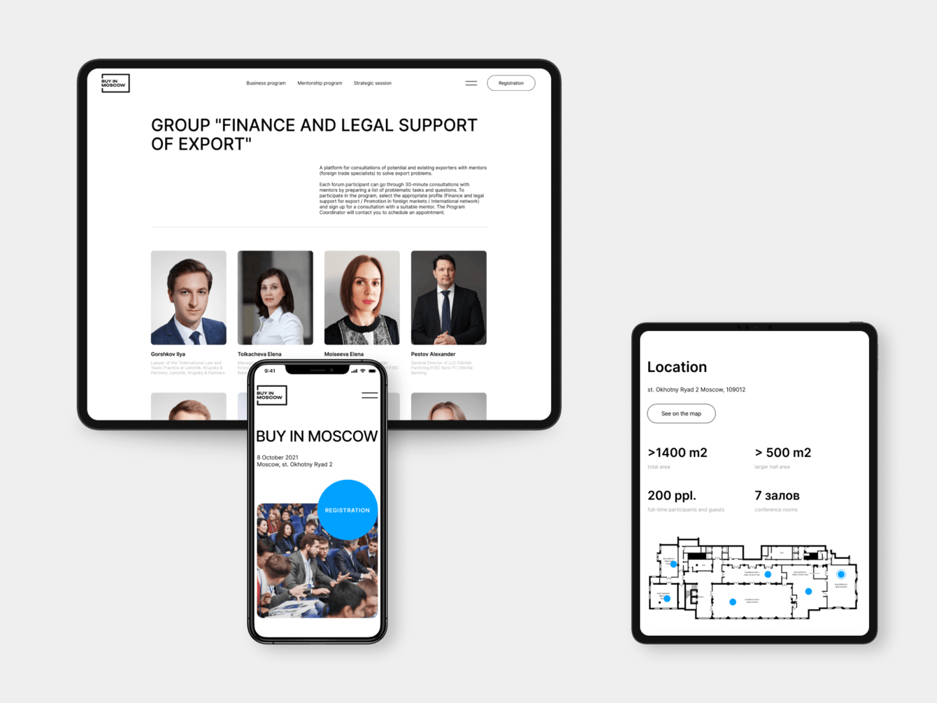 Необходимо было в кратчайшие сроки запустить промо-сайт для международного форума по экспорту. Сайт должен был быть оптимизирован под все устройства. Также был необходим ряд интеграций со стриминговыми сервисами и с сервисами рассылок.
