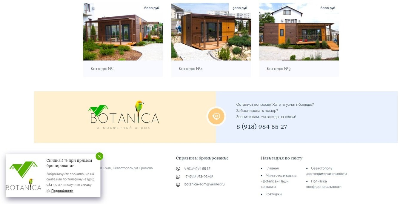 Съемка фото/видео контента. Разработка логотипа и фирменного стиля. Сайт с возможностью бронирования коттеджей. Активный постер с офером и кнопкой перехода к вариантам размещения. Промо-видео и описание о компании. Варианты размещения с обозначением оборудования, описание услуг. отзывы,красочная галерея с лайтбоксом. Адаптивная верстка для все устройств, правильный функционал, высокая скорость загрузки сайта.