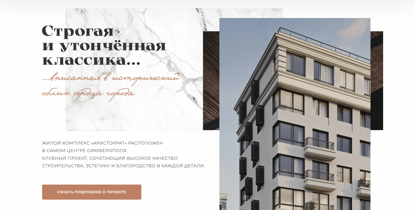 К нам обратился заказчик крупной строительной компании нашего региона, с просьбой разработать сайт для элитного жилого комплекса.