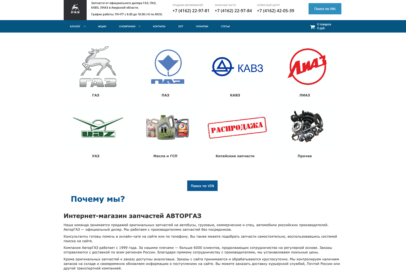 Разработан маногофункциональный веб-портал официального дилера автомобилей ГАЗ, ПАЗ, ЛиАЗ, КАвЗ в Амурской области. Предусмотрена адаптация верстки под любые мобильные и стационарные устройства.