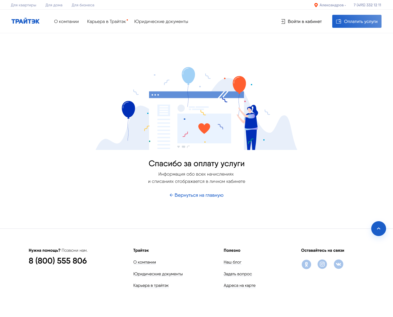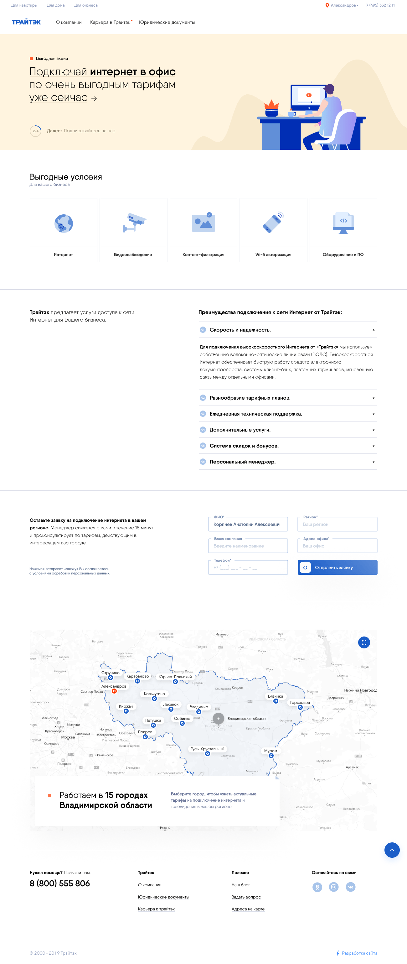 Благодаря нашему сотрудничеству удается поддерживать сайт ООО «Трайтэк» актуальным, современным с точки зрения функционала и дизайна, удобным для абонентов, а также соблюдать все требования законодательства.![]()