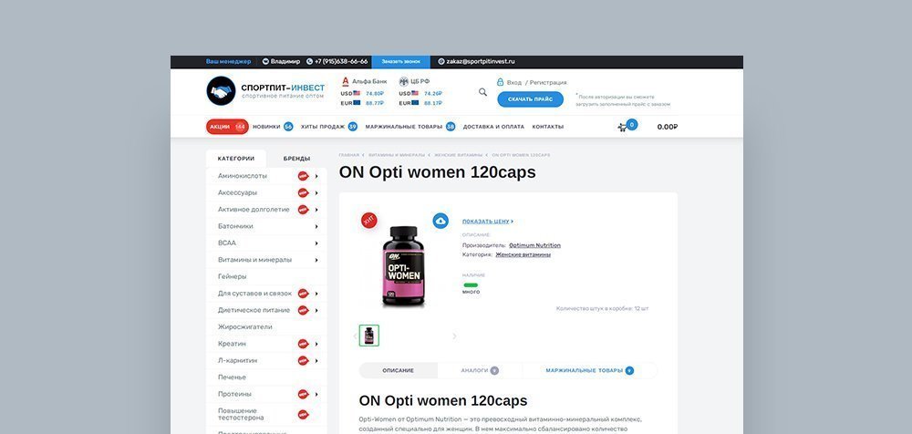 - Возможность указания каждому пользователю определенной цены на бренд или конкретный товар.