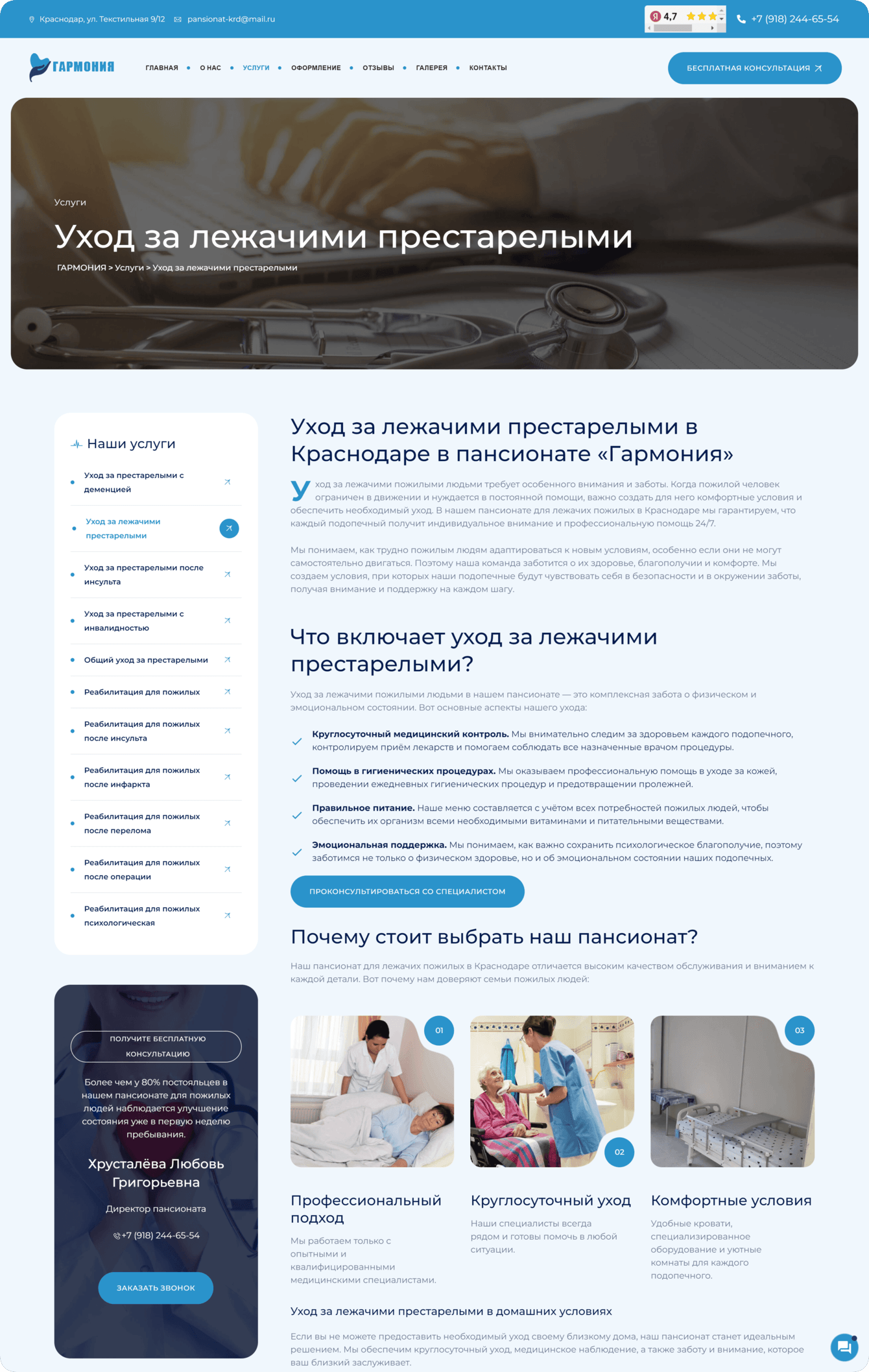 Работа над сайтом для пансионата «Гармония» была для нас вдохновляющим проектом. Нам удалось создать удобный, функциональный и визуально привлекательный сайт, который стал инструментом для эффективного взаимодействия с клиентами.
