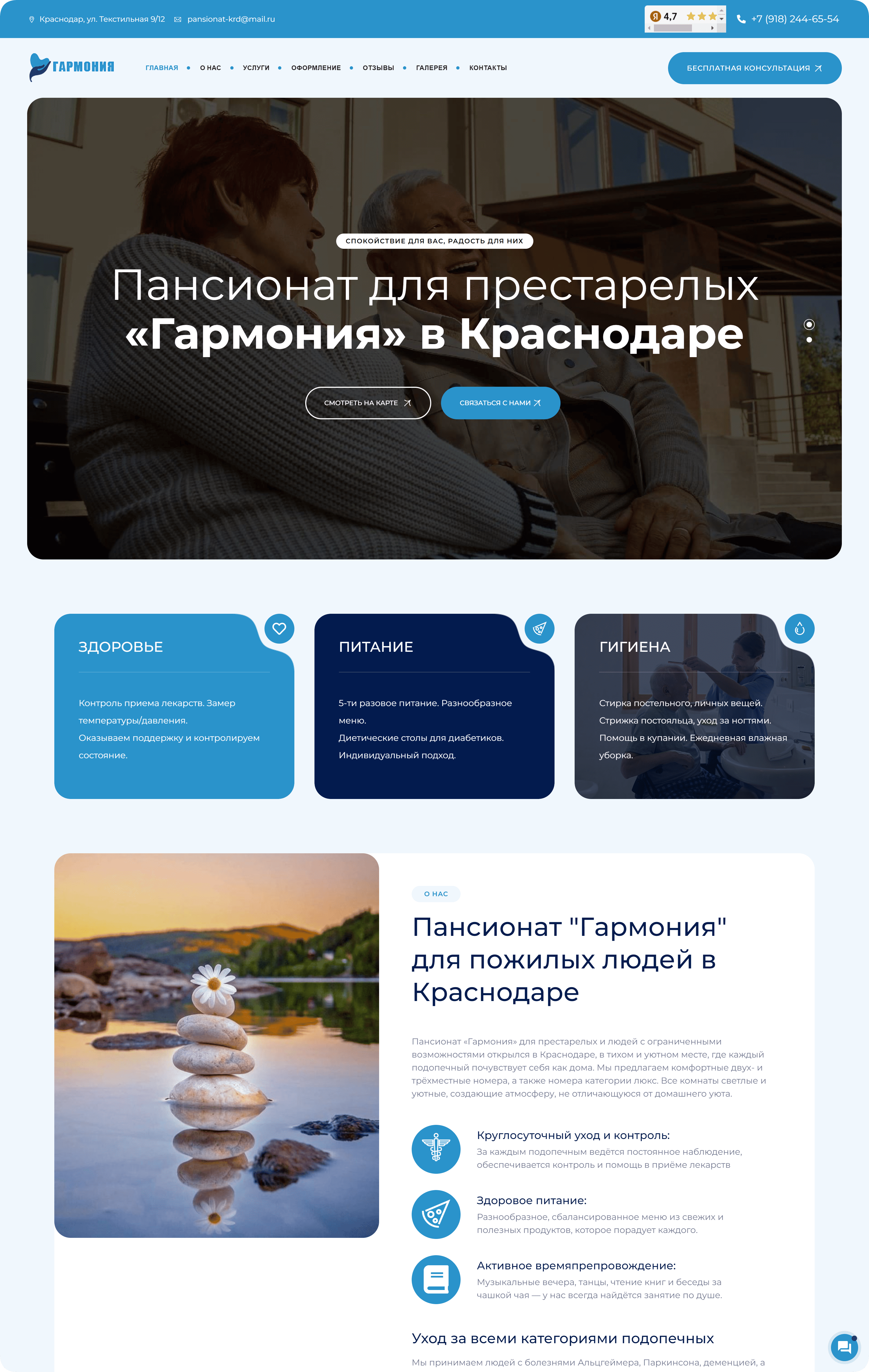Работа над сайтом для пансионата «Гармония» была для нас вдохновляющим проектом. Нам удалось создать удобный, функциональный и визуально привлекательный сайт, который стал инструментом для эффективного взаимодействия с клиентами.