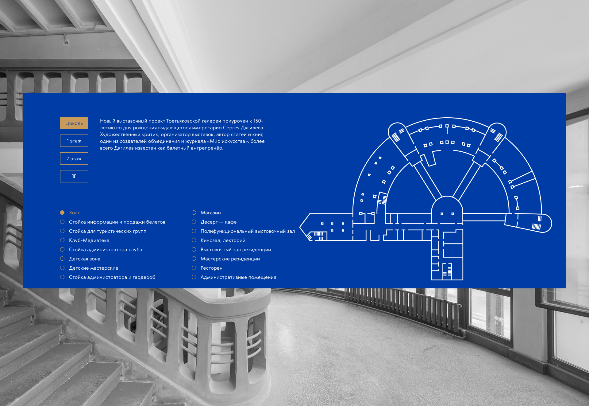 Интерактивная навигация по зданию стала центральным элементом пользовательского опыта. Лаконичный поэтажный план с четким зонированием позволяет посетителям легко ориентироваться в масштабном пространстве музея, включающем: