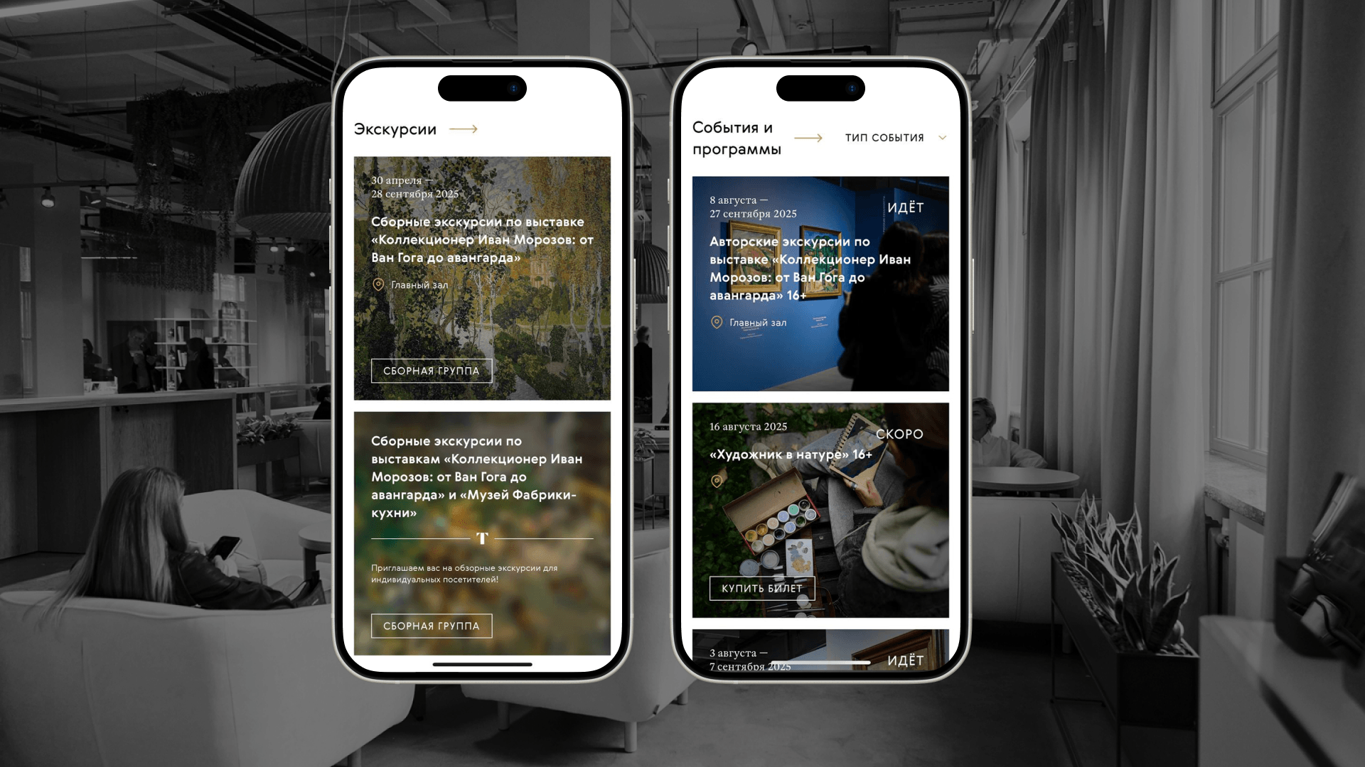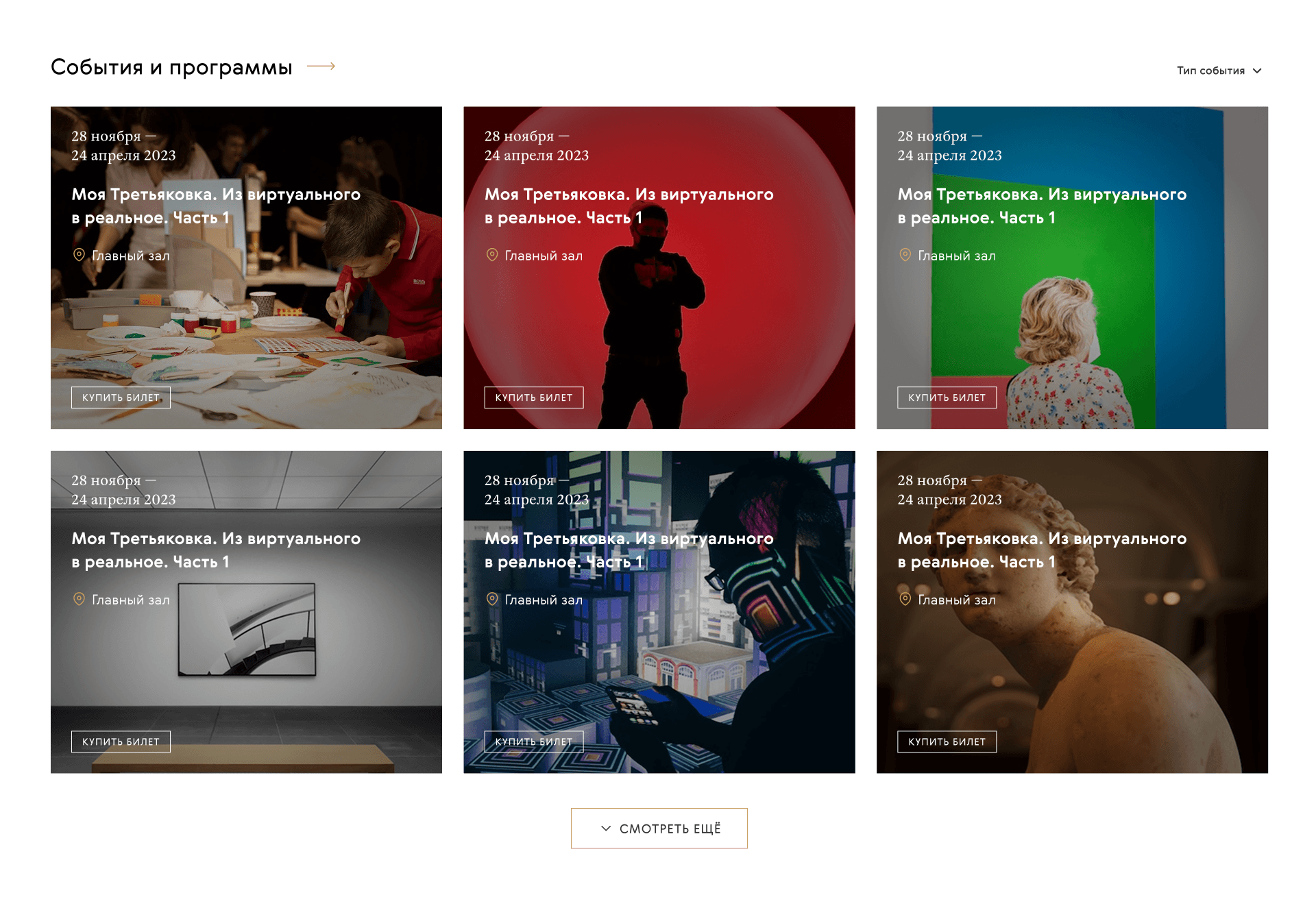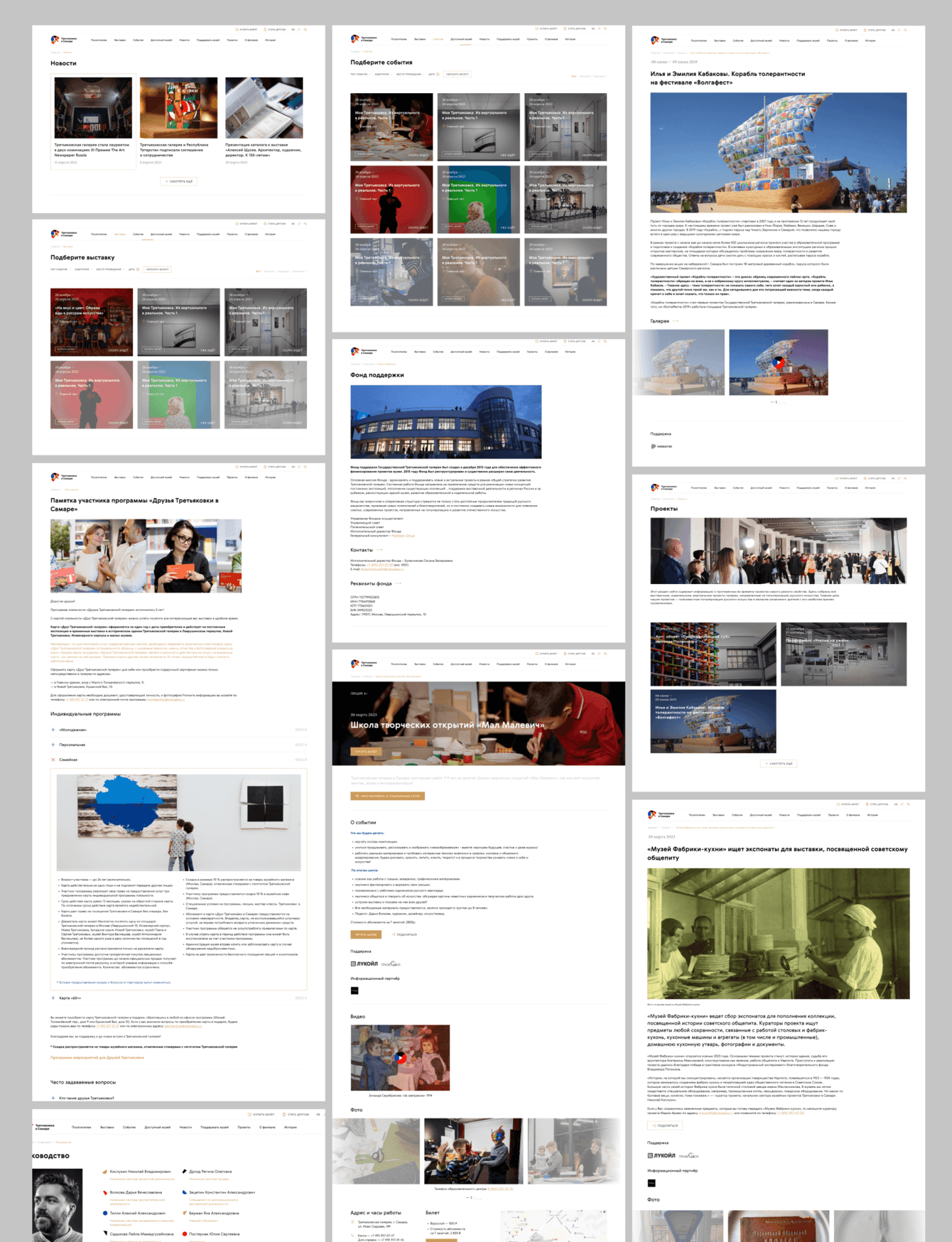 Перед нами стояла амбициозная задача — создать digital-пространство, достойное имени Третьяковки и отражающее концепцию филиала: диалог классики и современности сквозь призму культуры ХХ века. Сайт должен был стать не просто информационной площадкой, а полноценной онлайн-платформой, объединяющей все направления деятельности музея: от выставочных проектов до образовательных программ и арт-резиденции.