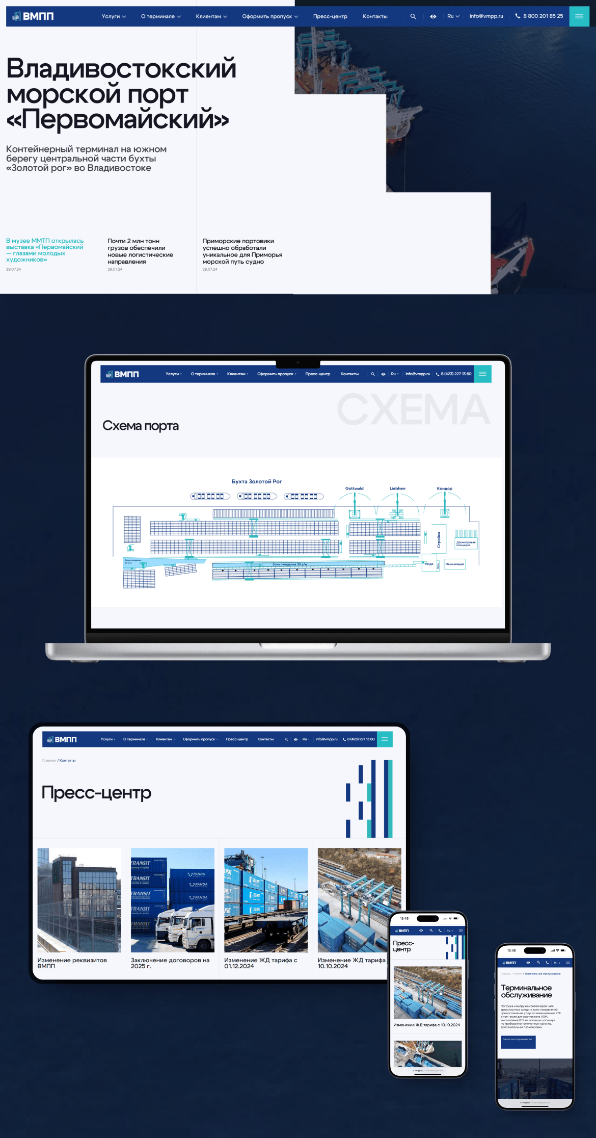 Сайт получился легким для восприятия, удобным и полностью адаптированным под задачи компании. Он демонстрирует ключевые преимущества порта и упрощает взаимодействие с клиентами.