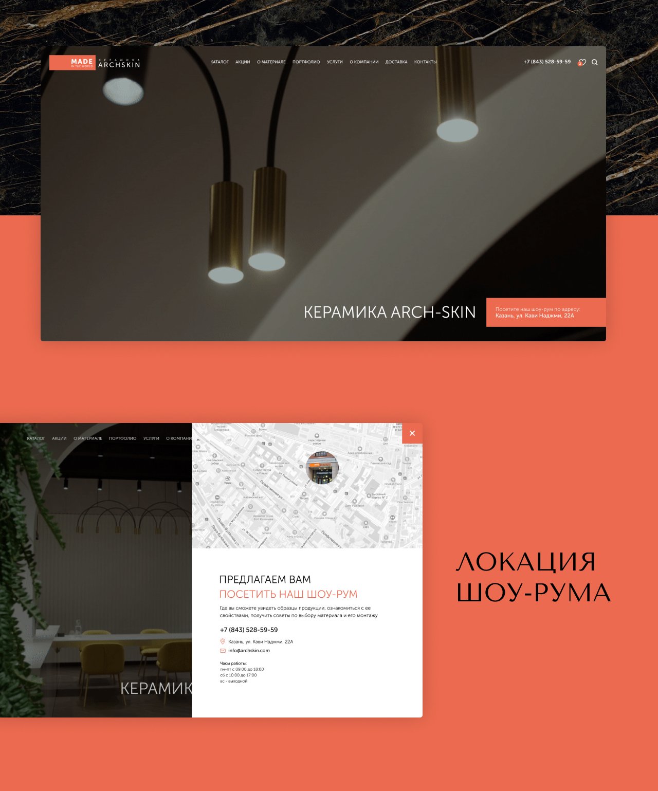 ARCH-SKIN — это компания с более, чем 20-летней историей, которая занимается поставками керамических плит — уникального отделочного материала для любых поверхностей. Новому представительству в городе Казань нужен был удобный функциональный сайт, который отражал бы эстетические ценности бренда и помогал привлекать новых покупателей. Сайт – первый и решающий шанс произвести впечатление, которое закрепляется качеством продукта и красотой оффлайн-магазина.
