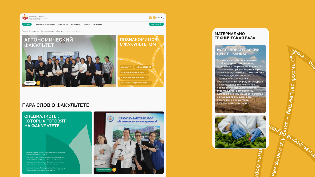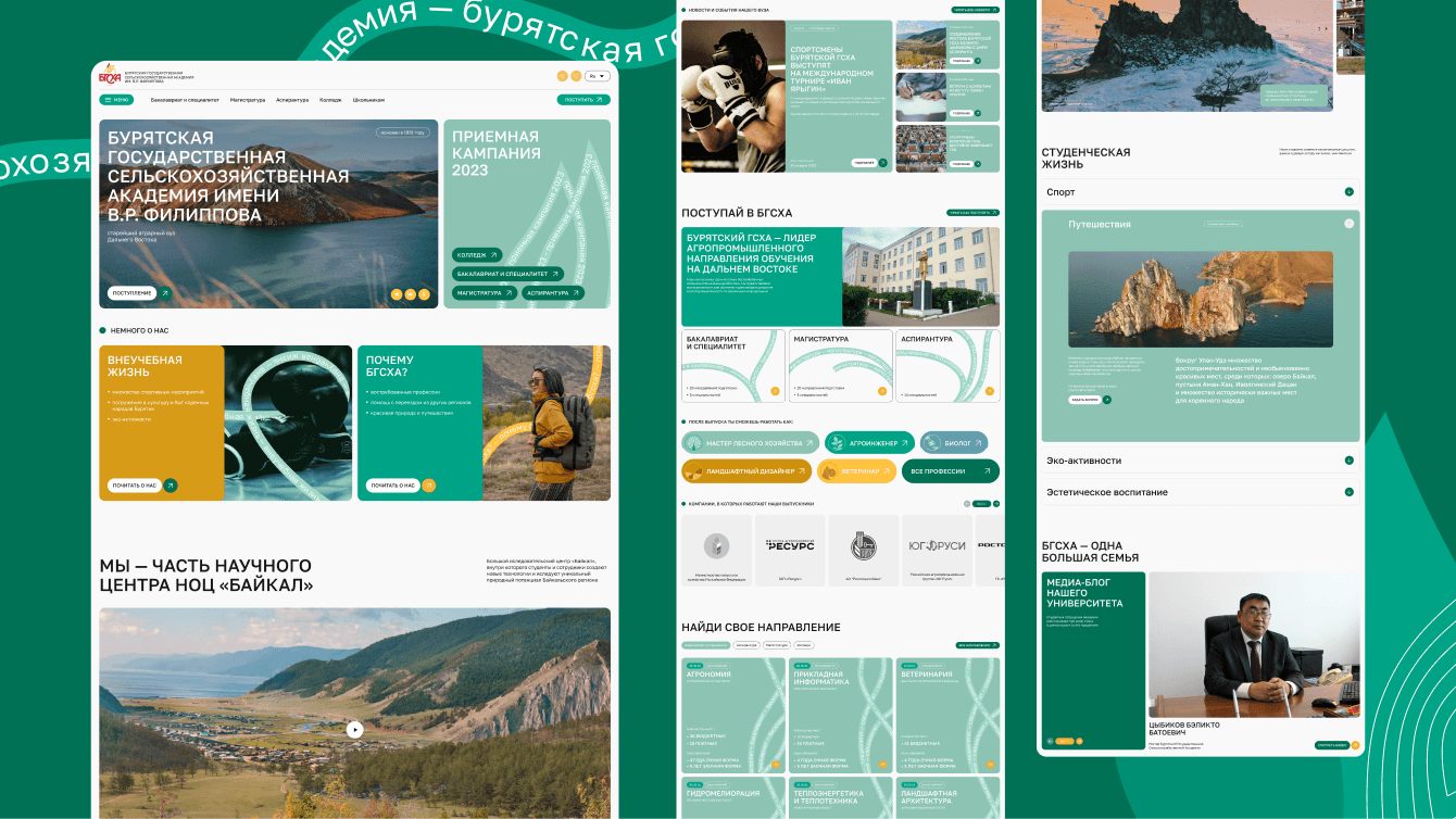 Сайт для поступающих в БГСХА — современный интернет-ресурс, который продвигает среди абитуриентов не только саму Академию, но и всю Бурятию, а также делает процесс поступления простым и понятным.