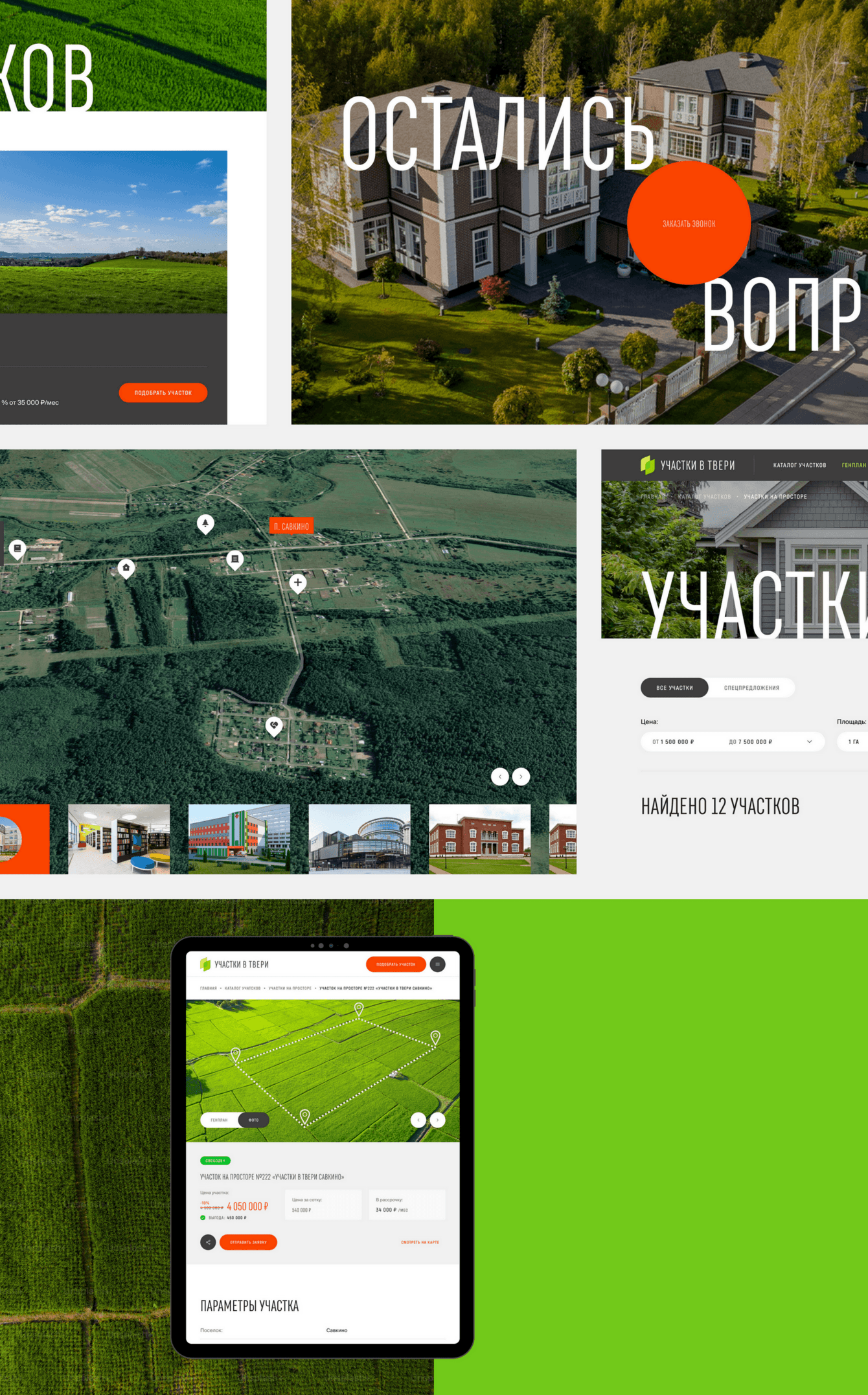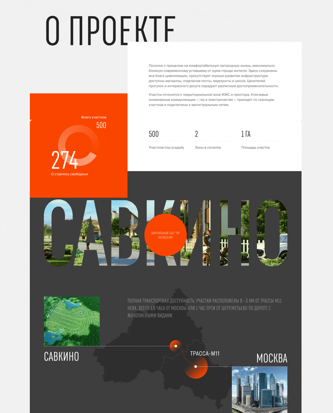 Структура и графическая концепция сайта полностью отвечают внутренней логике действий соискателя, планирующего приобрести участок за городом.