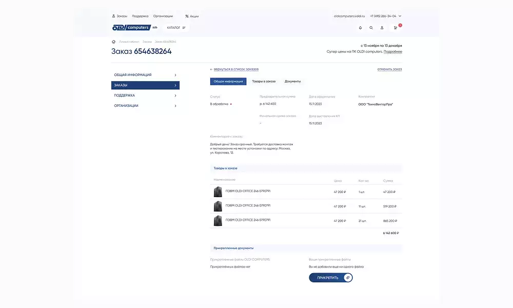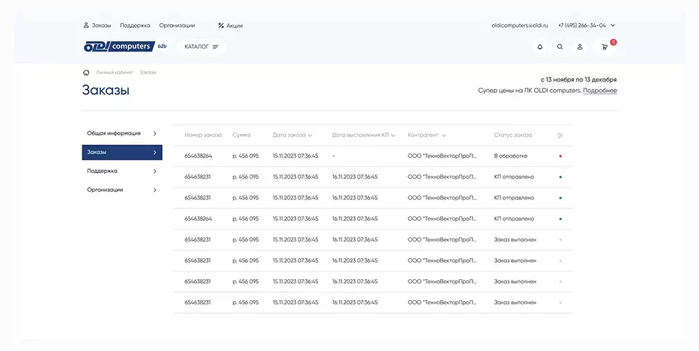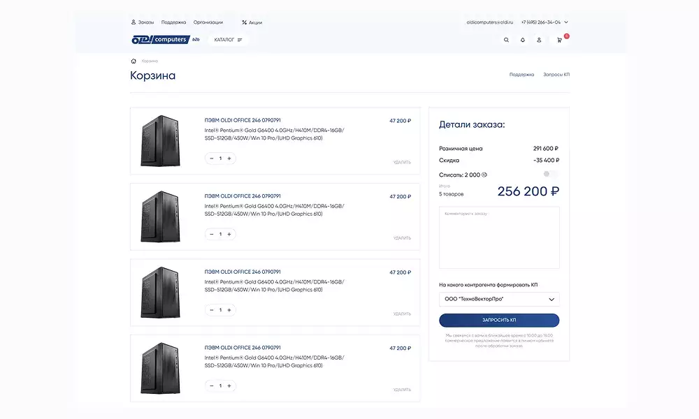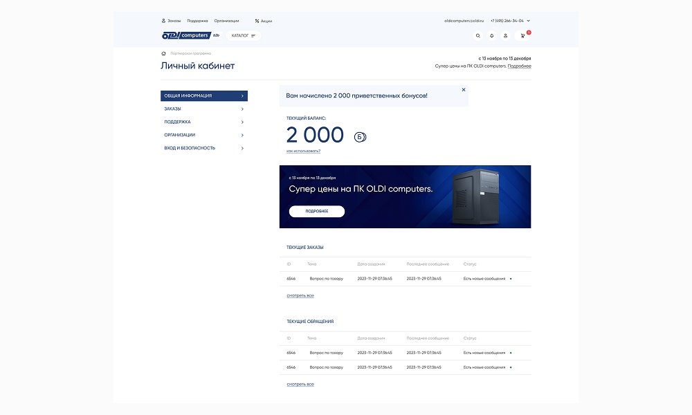 Работали над созданием интернет-магазина для компании OLDI Computers, одного из крупнейших производителей компьютерной техники в России. Изначально перед нами стояла довольно интересная задача – создать закрытый сайт с проработанным личным кабинетом для юридических лиц, то есть для клиентов и партнеров в B2B-сегменте. Что это значит? Содержимое сайта должно было быть доступно только по предварительному одобрению, а это, в свою очередь, означало, что процесс регистрации и получения доступа были тщательно контролируемы. Для этого в проекте предусмотрели систему заявок и утверждений.