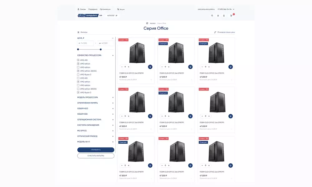 Так как продуктом является компьютерная техника, для удобства поиска нужной позиции обязательно включили поиск по характеристикам.