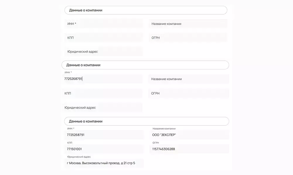 При регистрации ЮЛ (или добавления нового контрагента в ЛК) добавили крутую фишку – подключение модуля, который подтягивает и заполняет все поля по ИНН. Супер удобно, чтобы не тратить время на копирование реквизитов и перепроверку.