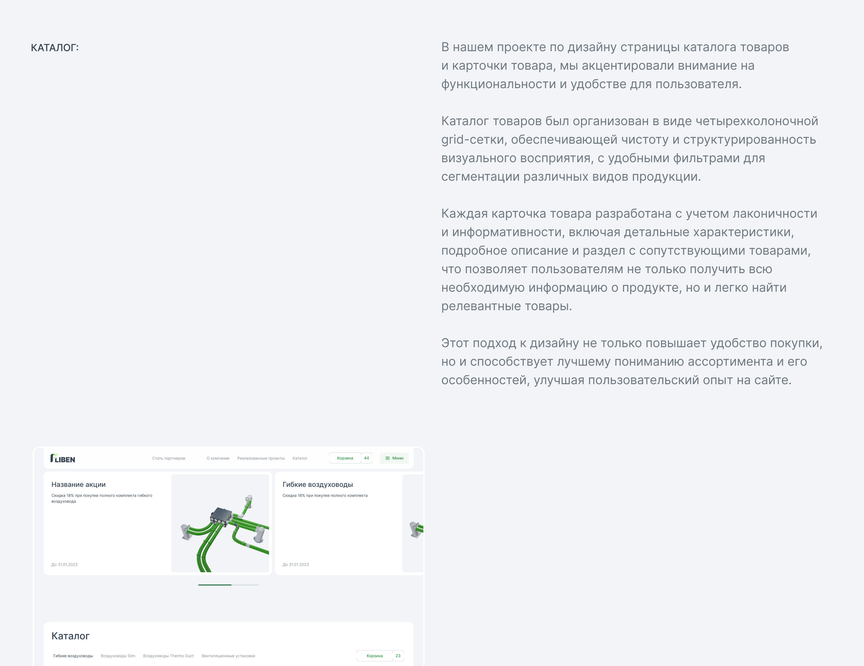 – Добавили технические страницы, калькуляторы, схемы и 3D-визуализации для сложных товаров.