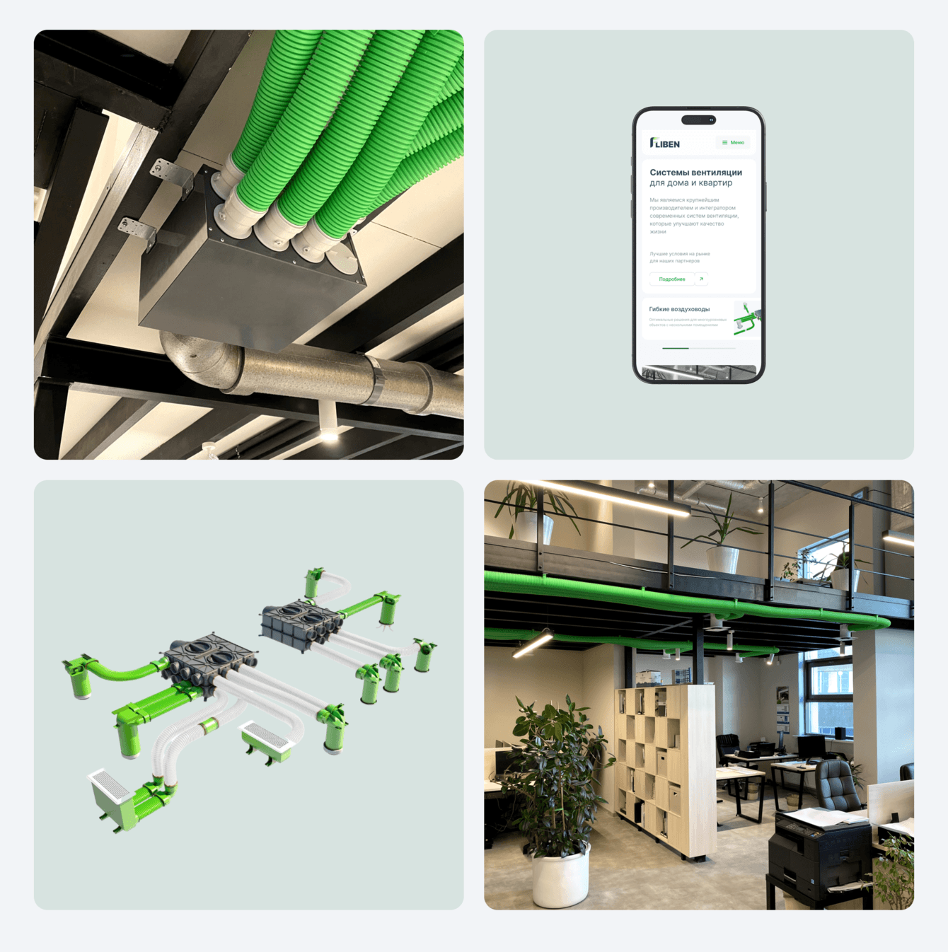 – Разработали логотип и визуальный стиль: технологичный, современный, с “дышащими” зелёными оттенками и промышленной геометрией.