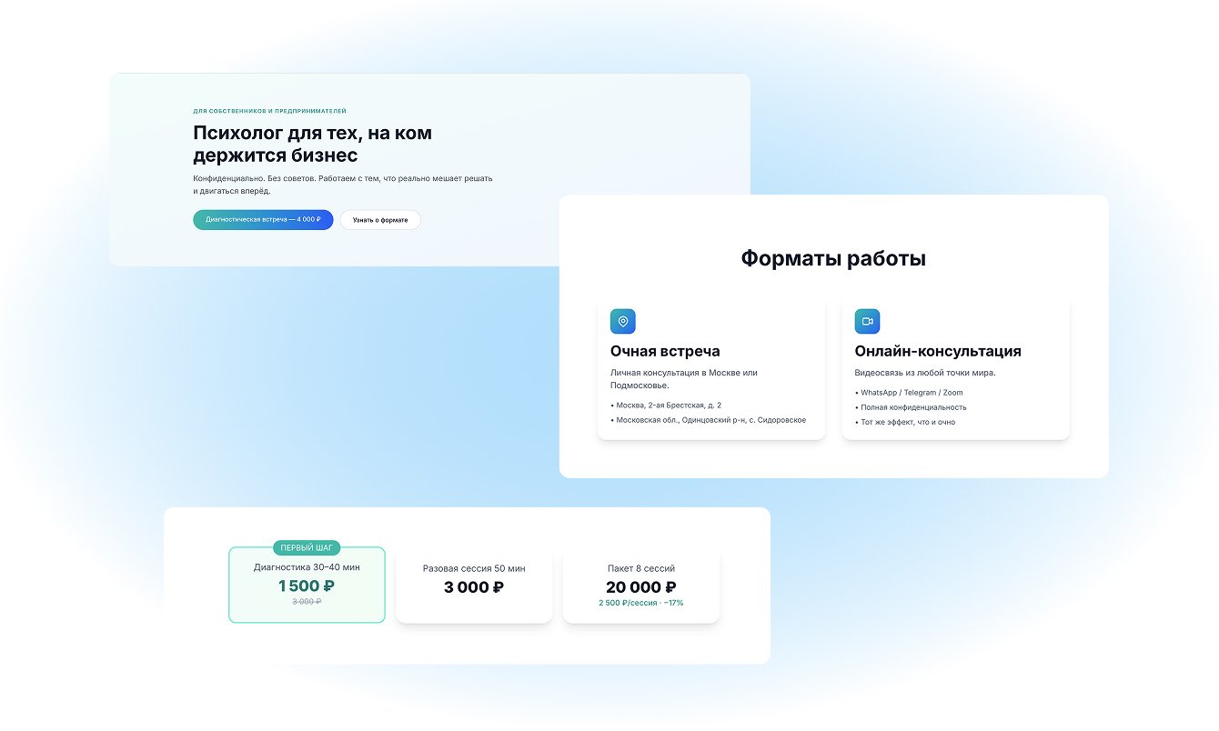 Мы разработали сайт с акцентом на упаковку экспертизы и доверие.