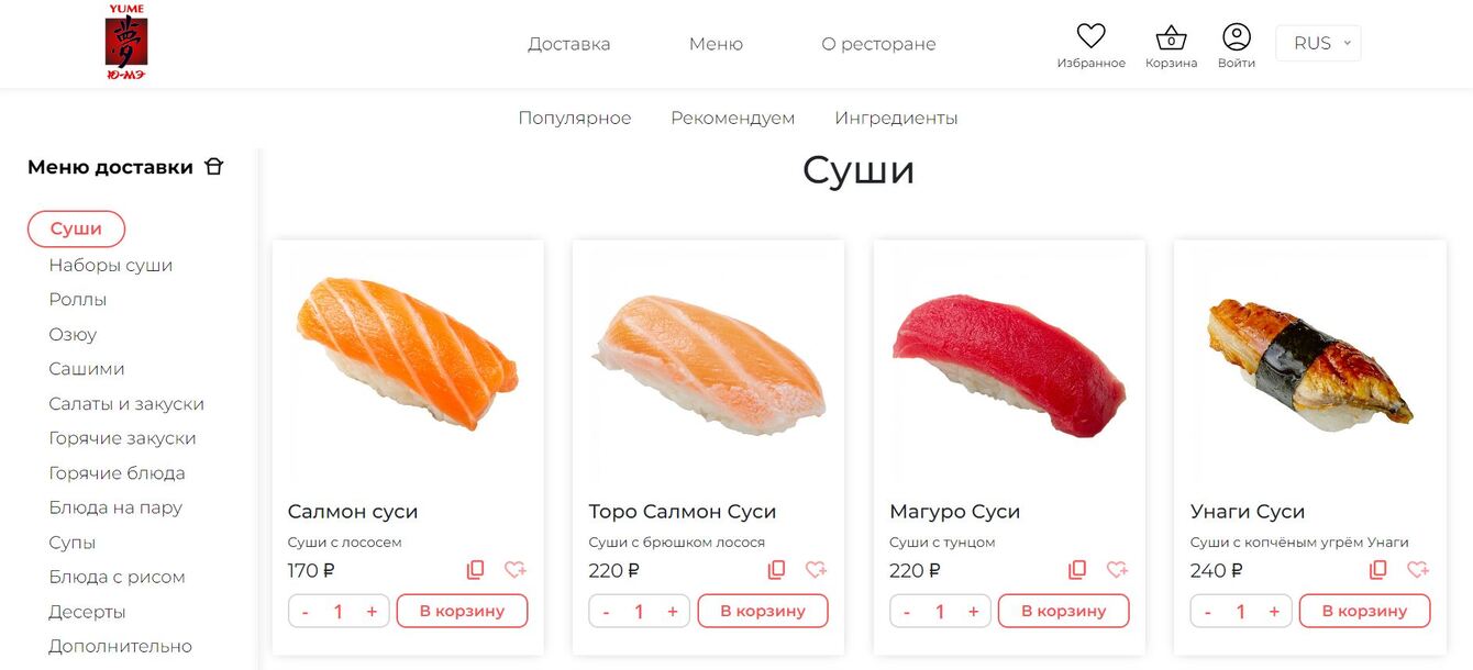 Мы сделали лаконичный сайт и сервис доставки для ресторана японской кухни. Предложили нашим клиентам решение на Bitrix, потому что оно эффективно для сервисов доставки, и позволяет реализовать кастомный каталог и форму заполнения заказа со всеми пожеланиями заказчика. Также было важно интегрировать CMS c бухгалтерией и настроить попадание заказов с сайта сразу в CRM в рамках одного продукта.